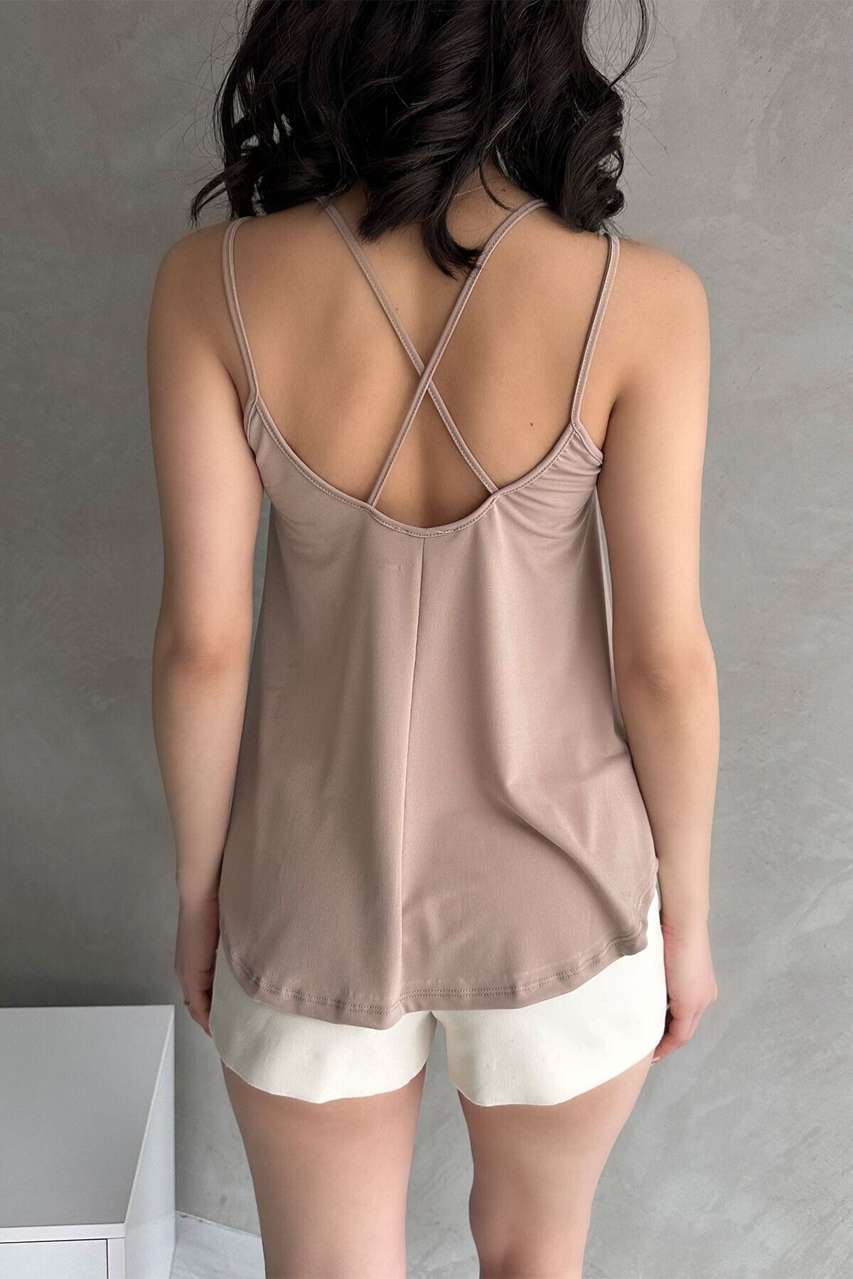 Askılı Düğme Detaylı Sırtı Çapraz Bantlı Sırt Dekolteli Kadın Bluz