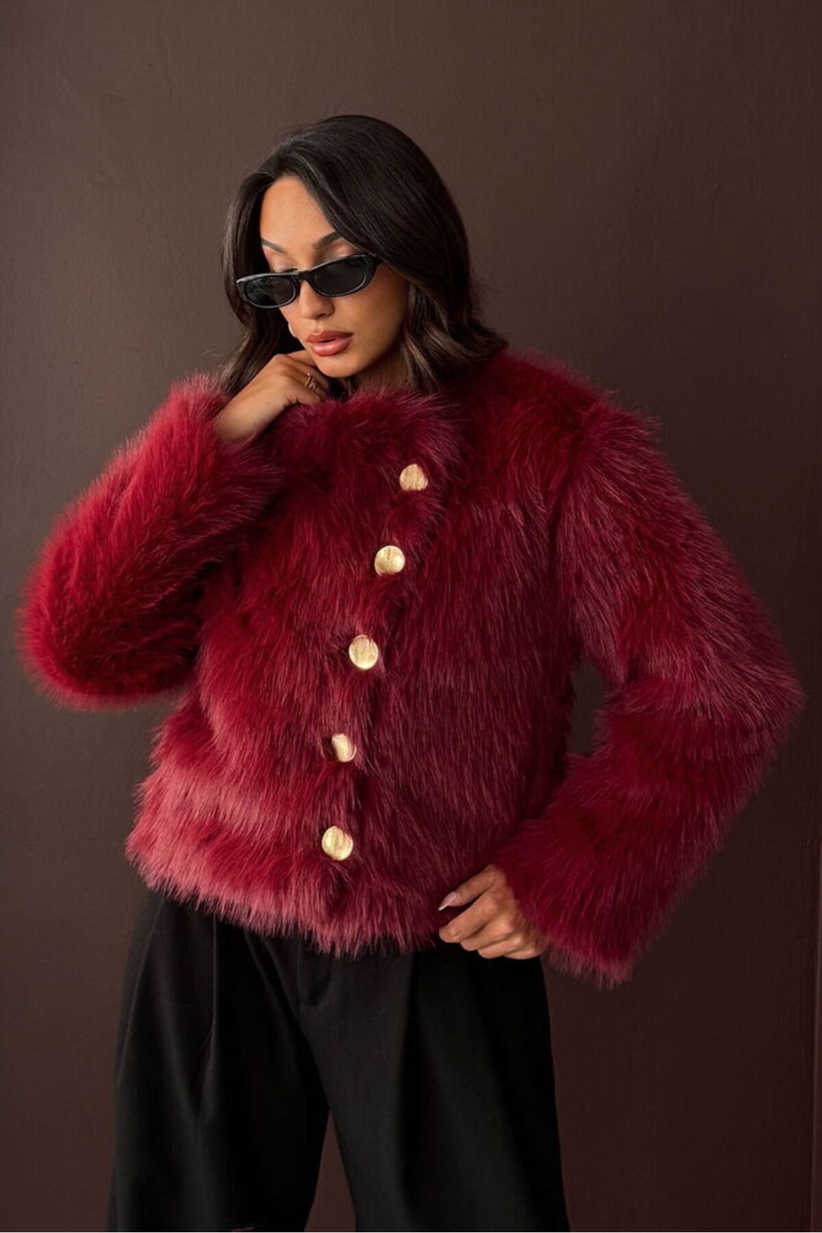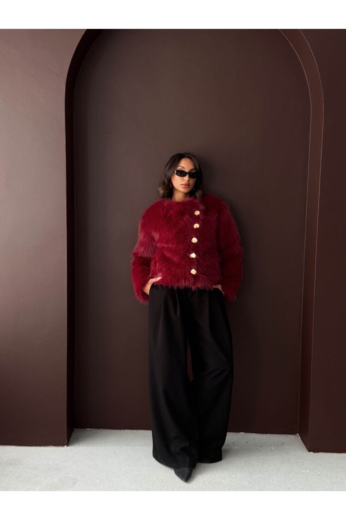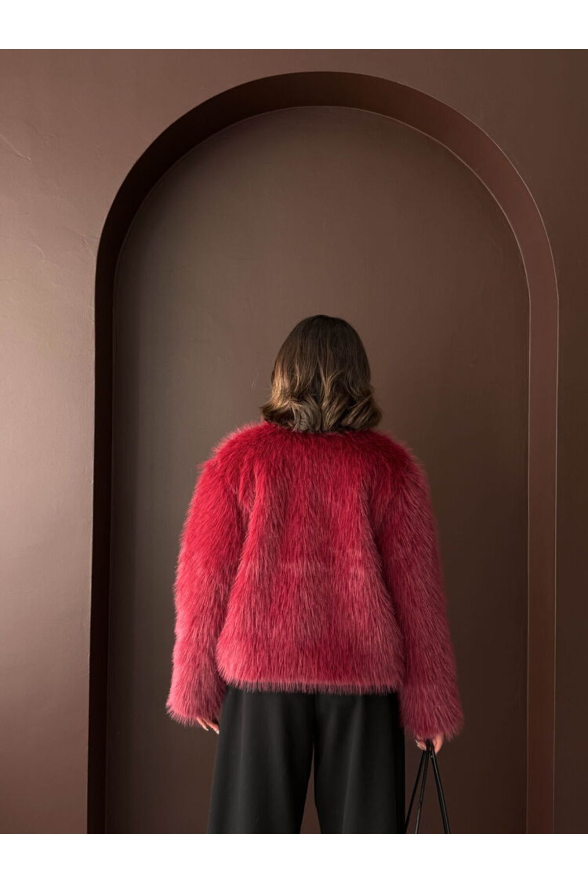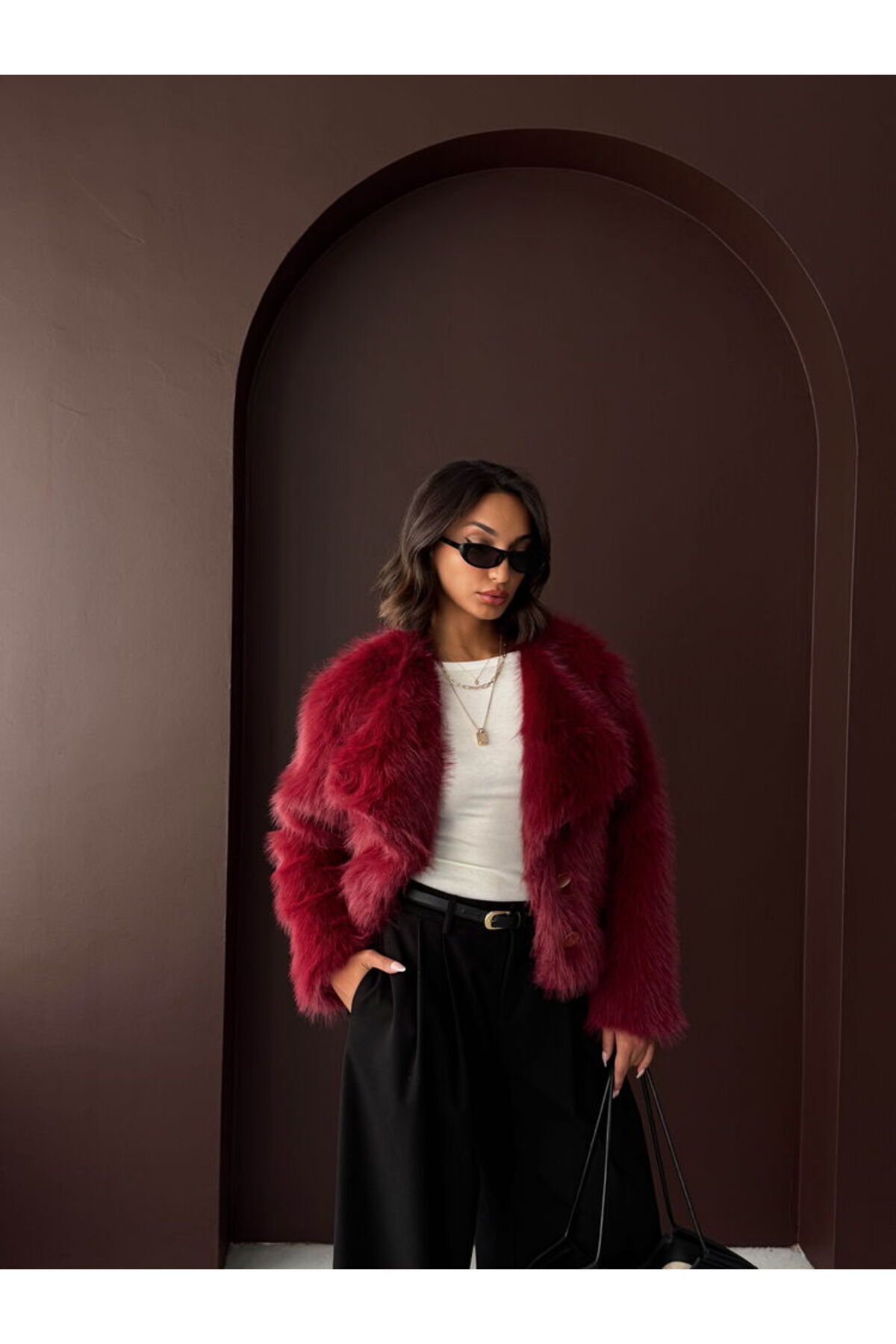 Bordo Tavşan Tüyü Kürk Mont Modern Premium Luxury Trend Tasarım Mont