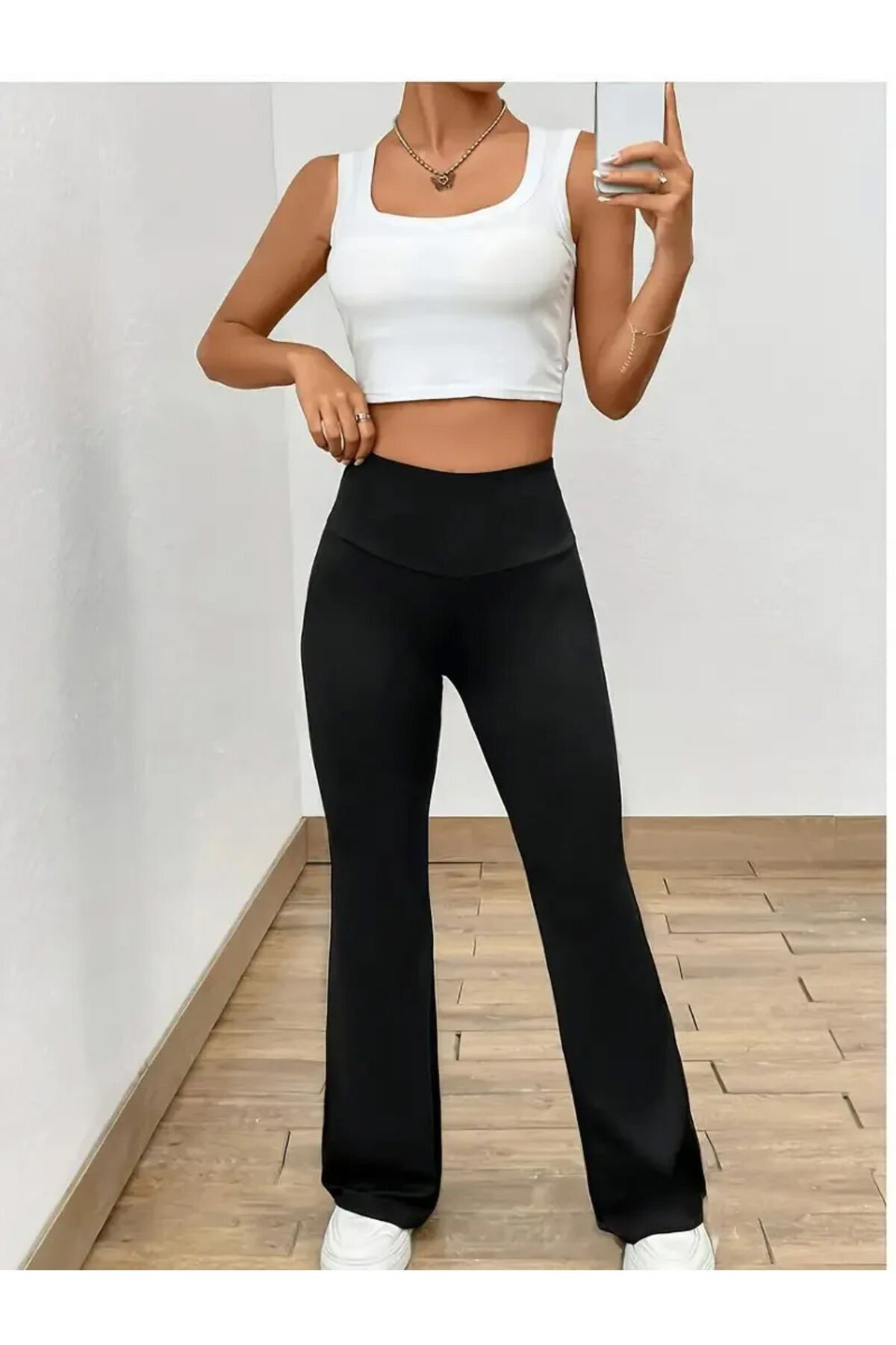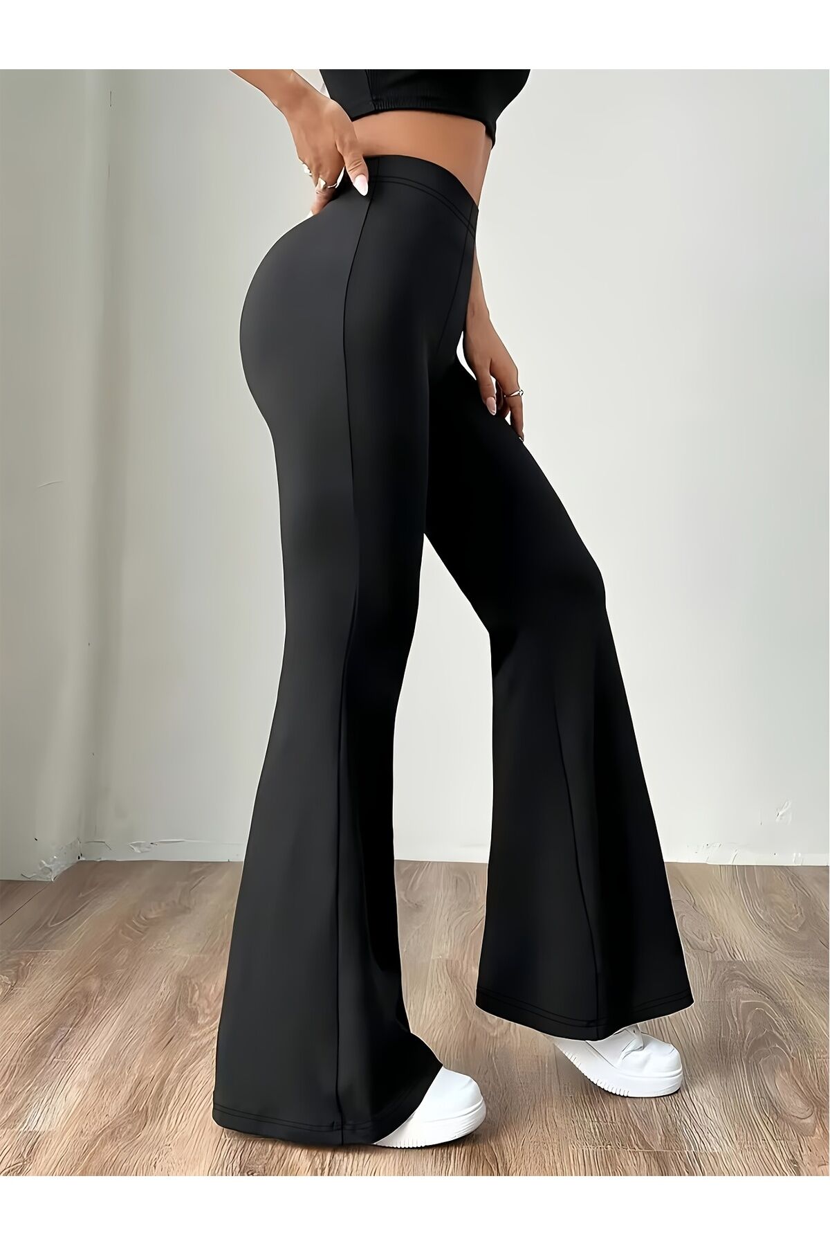 Kadın Yüksek Bel Geniş Paçalı Scuba (Dalgıç) Tayt Rahat, Şık ve Esnek Sporcu Yoga Pantolonu