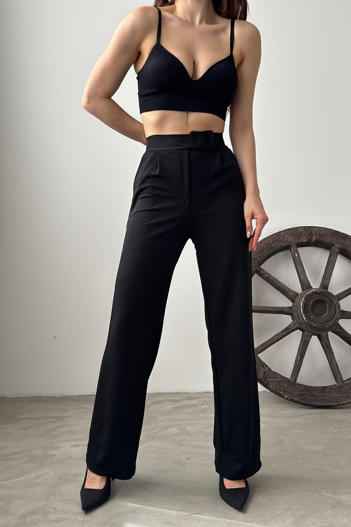 - Yüksek bel tasarımı ile modern ve şık bir görünüm sunar.; - Pileli yapısı sayesinde hareket özgürlüğü sağlar ve zarif bir siluet oluşturur.; - Astarsız yapısıyla hafif ve rahat bir kullanım imkanı tanır.; - Kemer veya kuşak detayı bulunmadığından, kişisel zevke göre ayarlama yapılabilir.; - Cepsiz tasarım, minimalist ve sade bir stil vurgular.; - Cool & comfort persona ile günlük kullanıma uygun, rahatlıkla tercih edilebilir.; - Baskısız baskı tekniğiyle sade ve şık bir görünüm elde edilir.; - Orta kalınlıkta kumaşı mevsim geçişlerinde ideal konfor sunar.; - Tüm sezonlarda rahatlıkla kullanılabilen çok yönlü bir parçadır.; - Her yaş grubuna hitap eden geniş kullanıcı kitlesine sahiptir.; - Basic koleksiyonun sadeliğini yansıtan bu pantolon, her gardıropta temel parça olarak yerini alır.; - Yüksek bel kesimi sayesinde vücut hatlarını nazikçe sararak feminen bir duruş sergiler.; - Yetişkinlerin günlük kombinlerinde kolayca uyum sağlayacak şekilde tasarlanmıştır.; - Dokuma kumaşı dayanıklılığı artırırken, regular boy uzunluğuyla farklı vücut tiplerine uyum gösterir.; - Türkiye menşeli olmasıyla yerel üretim kalitesini garanti altına alır.; - Kadın ve kız çocukları için özel olarak üretilmiştir; herkes için erişilebilirlik sağlanmıştır.