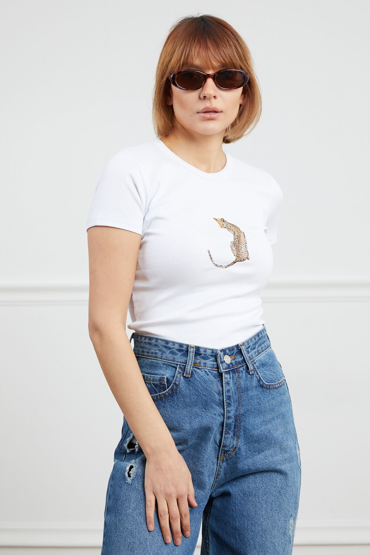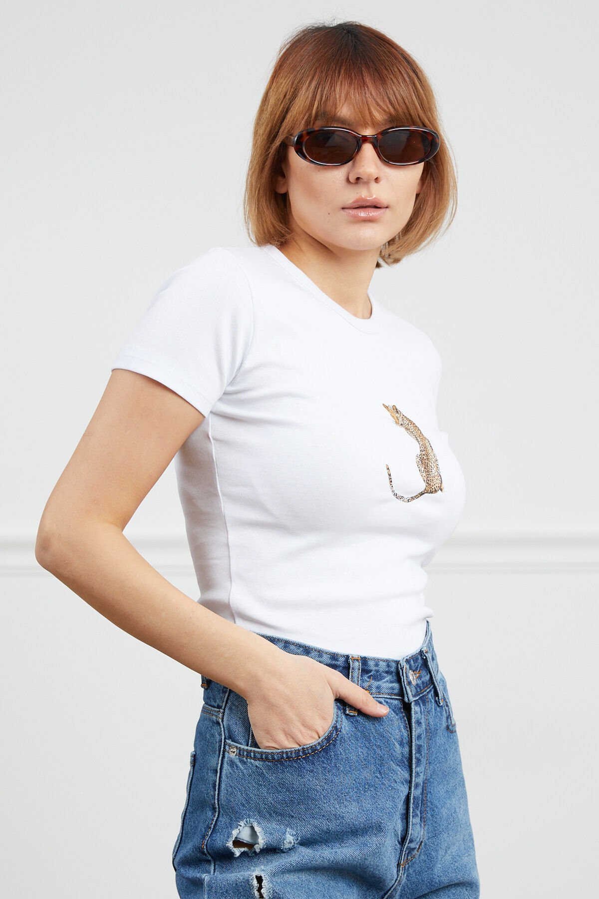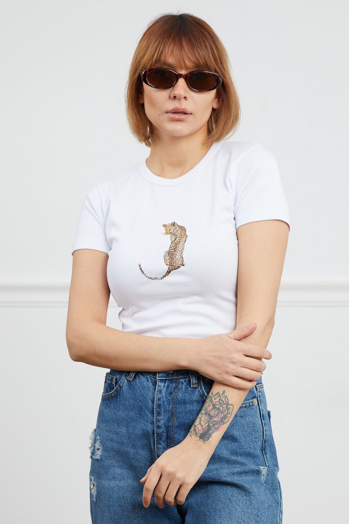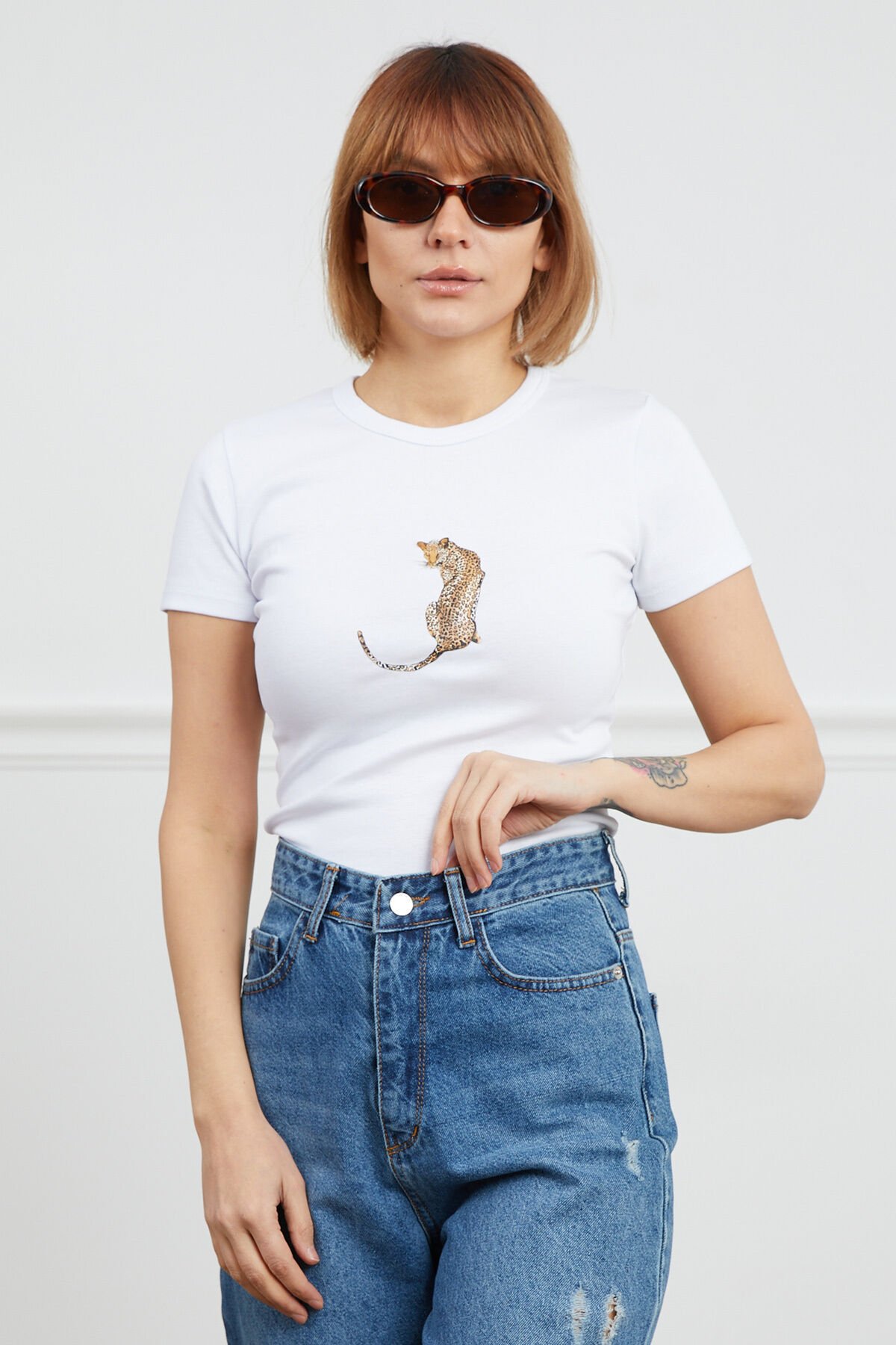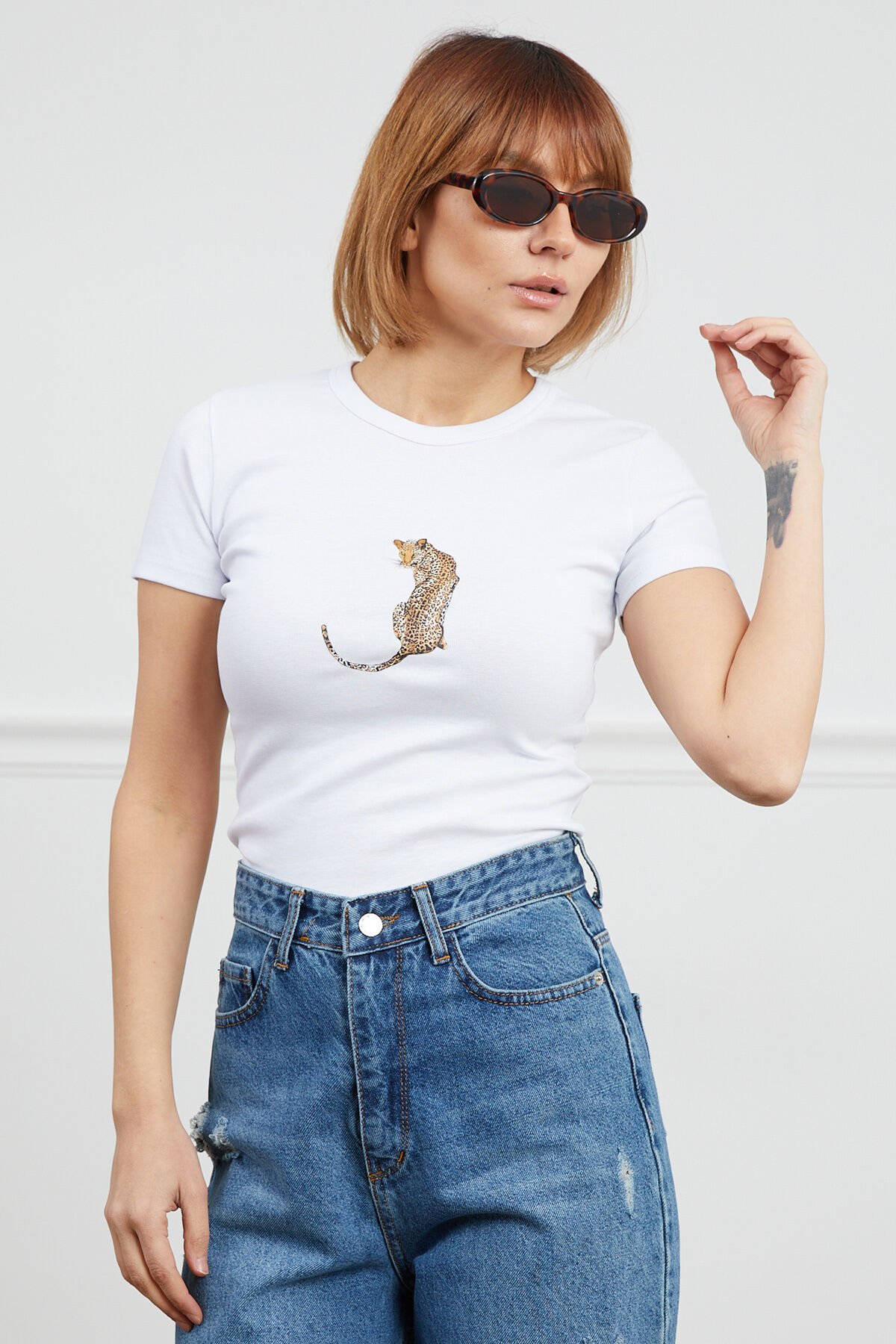 Leopar Baskılı Body 41035346793-Beyaz Leopar Baskılı Body