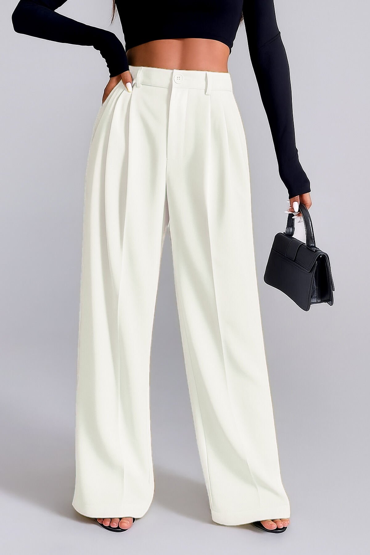 Palazzo Trend Kadın Şık Keten Karışımlı Pamuklu Bol Kesim Yüksek Bel Pileli Dökümlü Yazlık Pantolon