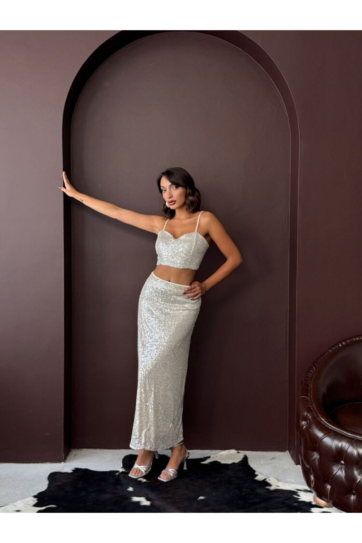Payetli Büstiyer Modern Premium Modern Luxury Trend Tasarım Işıltınızı serbest bırakın! "Premium Modern Luxury" koleksiyonumuzun en iddialı ve dinamik parçalarından biri olan Payetli Büstiyer, göz alıcı dokusu ve trend crop kesimiyle stilinize lüks bir imza atıyor.; Gece davetlerinden festival şıklığına, parti kombinlerinden özel etkinliklere kadar her anın yıldızı olmanız için tasarlandı.; Öne Çıkan Tasarım Detayları: - Göz Alıcı Payet İşleme: Ürünün tamamını kaplayan yüksek kaliteli dokulu payetler, ışığı her açıdan yakalayarak zengin ve derin bir parıltı sunar.; - Trend Crop Kesim: Modern silüetiyle bel hattınızı zarifçe vurgulayan crop boy tasarımı, güncel moda akımlarını stilinize taşır.; - Askılı Straplez Yaka: Omuz ve dekolte bölgesini estetik bir şekilde ön plana çıkaran askılı formuyla hem güvenli hem de son derece feminen bir duruş sergiler.; - Premium Doku & Konfor: Pamuk-polyester karışımlı özel dokuma yapısı, payetlerin ışıltısını konforlu bir iç yüzeyle birleştirerek gece boyunca rahat hareket etmenizi sağlar.; - Çok Yönlü Stil: Taş, Bordo ve diğer tüm renk varyasyonlarıyla; hem klasik hem de modern alt gruplarla mükemmel bir uyum yakalar.; Teknik Bilgiler: - Materyal: Pamuk Polyester Karışımlı Premium Payet - Kumaş Tipi: Dokuma / Payet İşlemeli - Yaka Tipi: Askılı Straplez - Kol Tipi: Kolsuz / Askılı - Boy: Crop - Kalıp: Bodycon / Fitted - Kalınlık: İnce (Mevsimsiz) - Stil: Modern, Luxury, Trend, Şık / Gece - Sezon: Tüm Sezonlar - Kullanım Alanı: Parti, Gece Kulübü, Davet, Festival, Özel Günler Kombin Önerisi: Bu payetli büstiyeri, koleksiyonumuzdaki "Yüksek Bel Bol Paça Saten Pantolon" ile kombinleyerek "Luxury" bir akşam stili oluşturabilir veya oversize blazer ceketlerin içinde kullanarak modern-modern bir "Trend" görünüm yakalayabilirsiniz.; Bakım Talimatı: Payetlerin yapısını ve ürün formunu uzun süre korumak için ürünü ters çevirerek elde soğuk yıkama yapmanız veya profesyonel kuru temizleme tercih etmeniz önerilir.; Stilinize ışıltılı bir dokunuş katmak ve gecenin parlayan ismi olmak için "Payetli Büstiyer Modern Premium Luxury" modelini hemen sepetinize ekleyin!