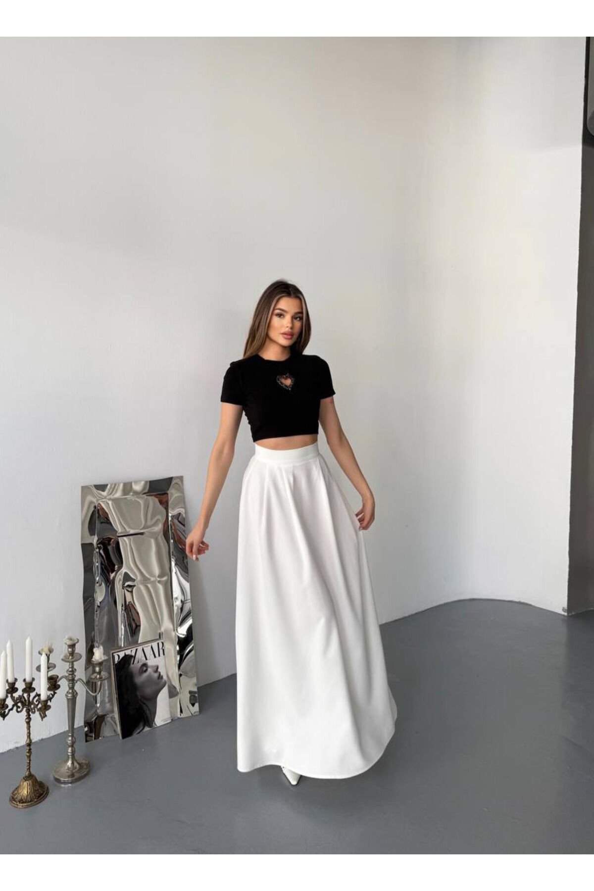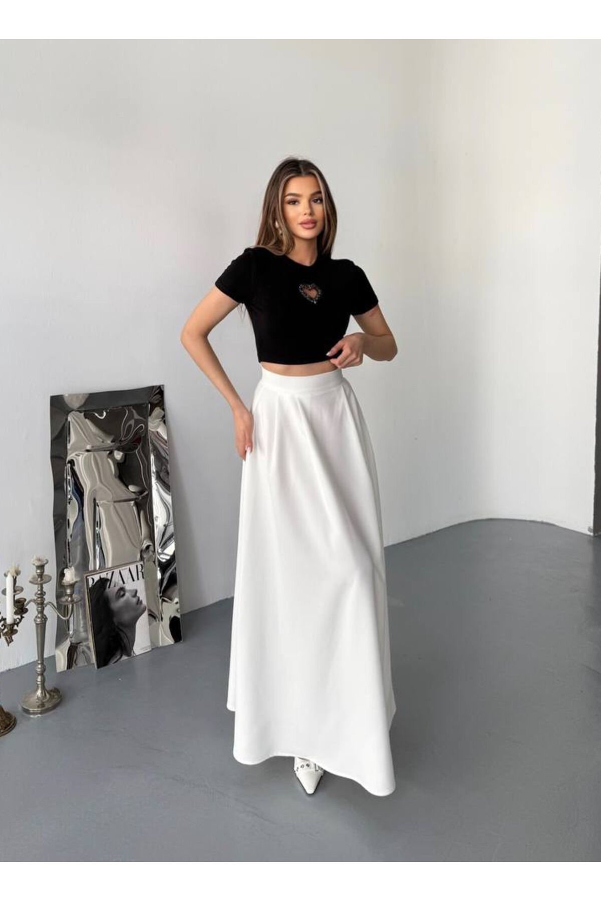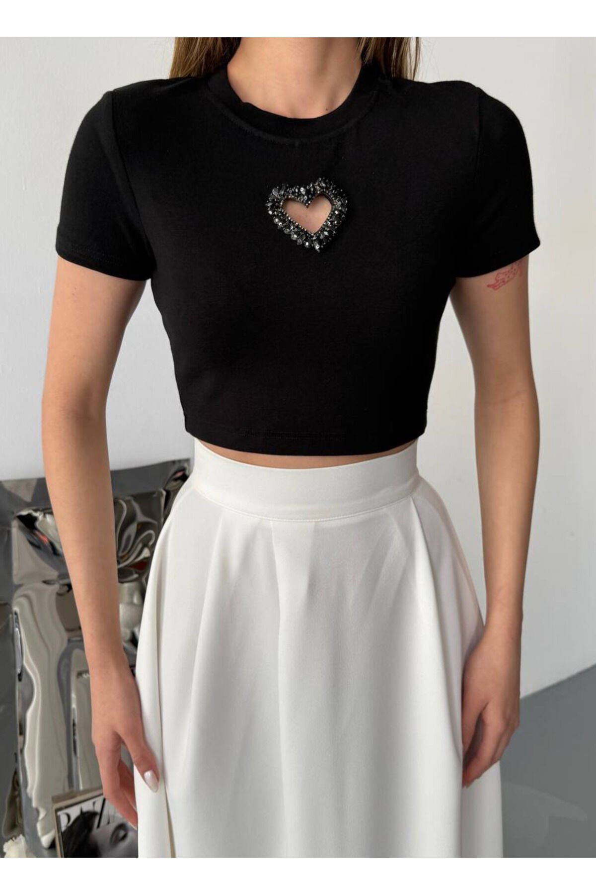 Önü Kalp Aksesuarlı Taş Detaylı Bisiklet Yaka Ribana Kumaş Kadın Crop Bluz T30EFJUIOKMH0 Önü Kalp Aksesuarlı Taş Detaylı Bisiklet Yaka Ribana Kumaş Kadın Crop Bluz
