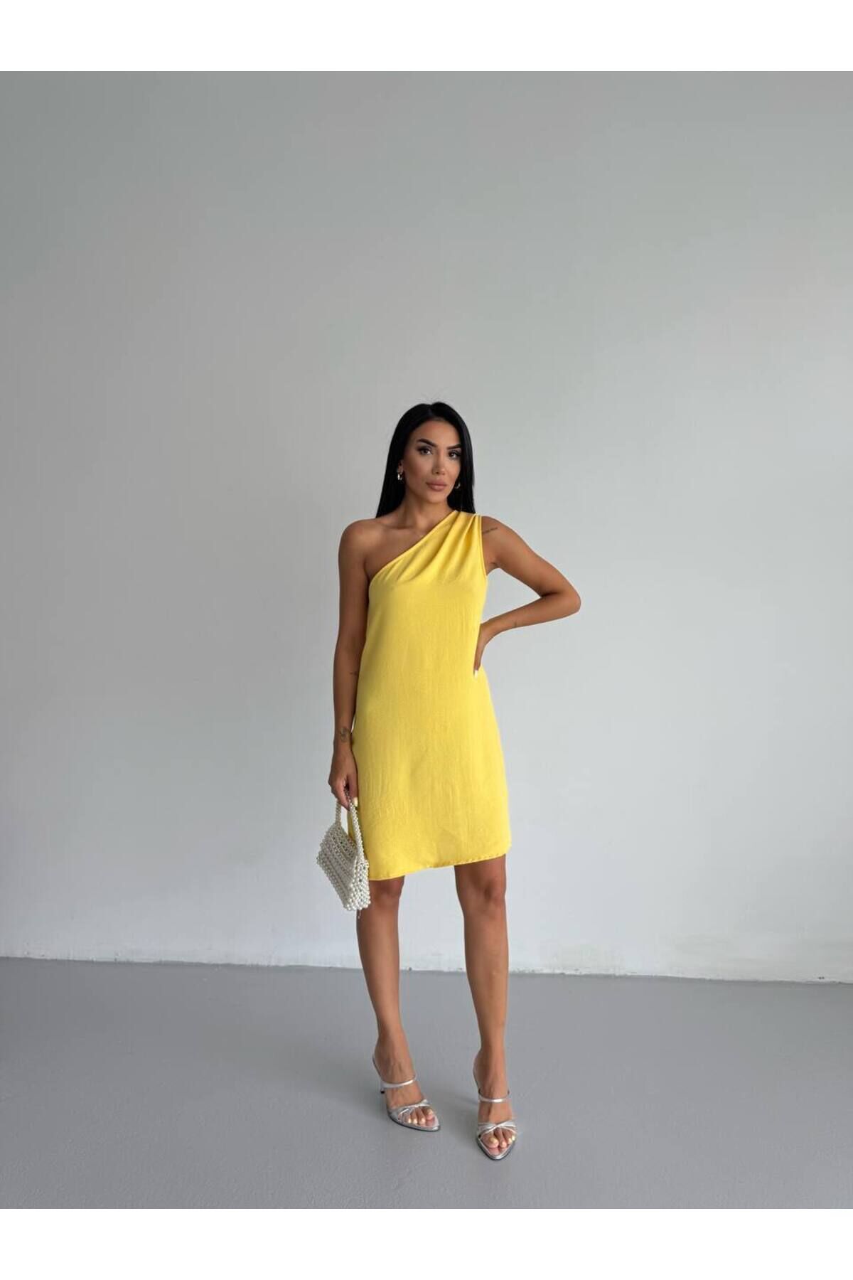 Tek Omuz Yazlık Aerobin Şık Casual Günlük Mini Kısa Kolsuz Basic Tatil Elbise S53EFJUIOKMH0 Tek Omuz Yazlık Aerobin Şık Casual Günlük Mini Kısa Kolsuz Basic Tatil Elbise