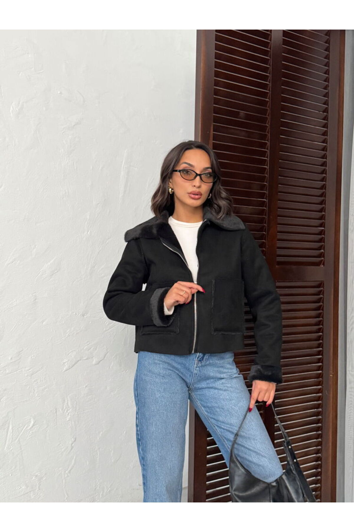 Siyah Süet Tavşan Lamine Mont Modern Premium Luxury Trend Tasarım Mont
