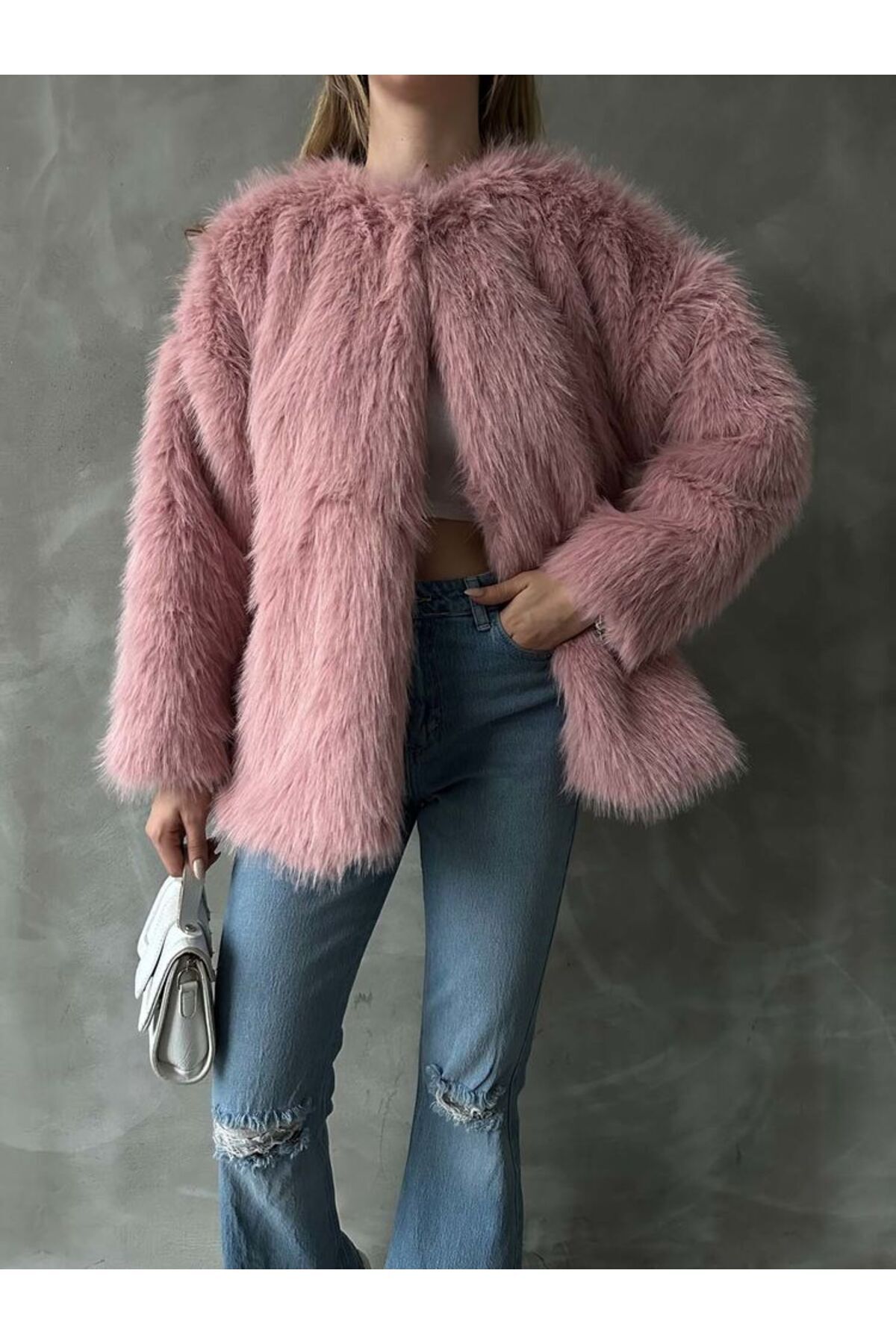 Kadın Uzun Tüylü Yumuşak Peluş Kürk Ceket - Oversize Şık Kışlık Mont ÜRÜN ÖZELLİKLERİ (Highlight Kısmı): • Materyal: Dökülme yapmayan, 1. sınıf yumuşak uzun tüylü suni kürk doku.; • Kalıp: Rahat hareket imkanı sağlayan modern oversize kesim.; • Tasarım: Yakasız (bisiklet yaka), önü açık, astarlı ve sofistike görünüm.; • Kullanım Alanı: Hem günlük jean kombinleri hem de gece davetleri için uygundur.; • Renk Seçenekleri: Siyah, Acı Kahve, Krem/Bej ve Gül Kurusu (Pembe).; • Mevsim: Sonbahar ve Kış ayları için ideal sıcaklık sağlar.; ÜRÜN AÇIKLAMASI: Kış stilinize lüks bir dokunuş katın! [Marka Adınız] uzun tüylü peluş ceket, sezonun en trend parçalarından biri olarak dolabınızın vazgeçilmezi olmaya aday.; Yumuşacık Dokusu ve Göz Alıcı Tasarımı: Soğuk havalarda sizi sıcak tutarken stilinizden ödün vermemenizi sağlayan bu kürk ceket, dökümlü tüyleri ve kaliteli işçiliği ile dikkat çeker.; Yakasız modern tasarımı sayesinde boğazlı kazaklar, gömlekler veya şık bluzlarla mükemmel uyum sağlar.; Kombin Önerisi: Görsellerde olduğu gibi deri etek ve çizmelerle kombinleyerek şık bir akşam yemeğine katılabilir veya yüksek bel jean pantolon ve spor ayakkabılarla sokak modasının (street style) nabzını tutabilirsiniz.; Teknik Detaylar ve Yıkama Talimatı: • Kumaş Tipi: Suni Kürk / Peluş • Astar Durumu: Astarlıdır, iç göstermez ve vücudu rahatsız etmez.; • Kapama Şekli: (Eğer kopçalıysa buraya 'Gizli kopça kapamalı', değilse 'Önü açık tasarım' yazınız).; • Yıkama: Kürk yapısının bozulmaması için sadece kuru temizleme önerilir veya hassas yıkama talimatlarına uyulmalıdır.; Neden Bu Ceketi Tercih Etmelisiniz? • Tüy dökmez (kaliteli üretim).; • Hacimli duruşuyla zengin bir görünüm sağlar.; • Hafiftir, üzerinizde ağırlık yapmaz.