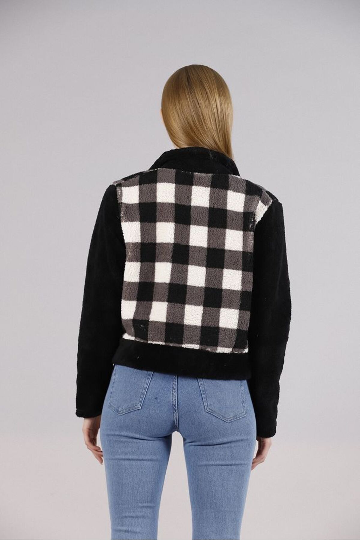 Siyah Dama Polar Çıtçıtlı Ceket Modern Premium Luxury Trend Tasarım Ceket A19EFJUIOKMH0F1133 Siyah Dama Polar Çıtçıtlı Ceket Modern Premium Luxury Trend Tasarım Ceket