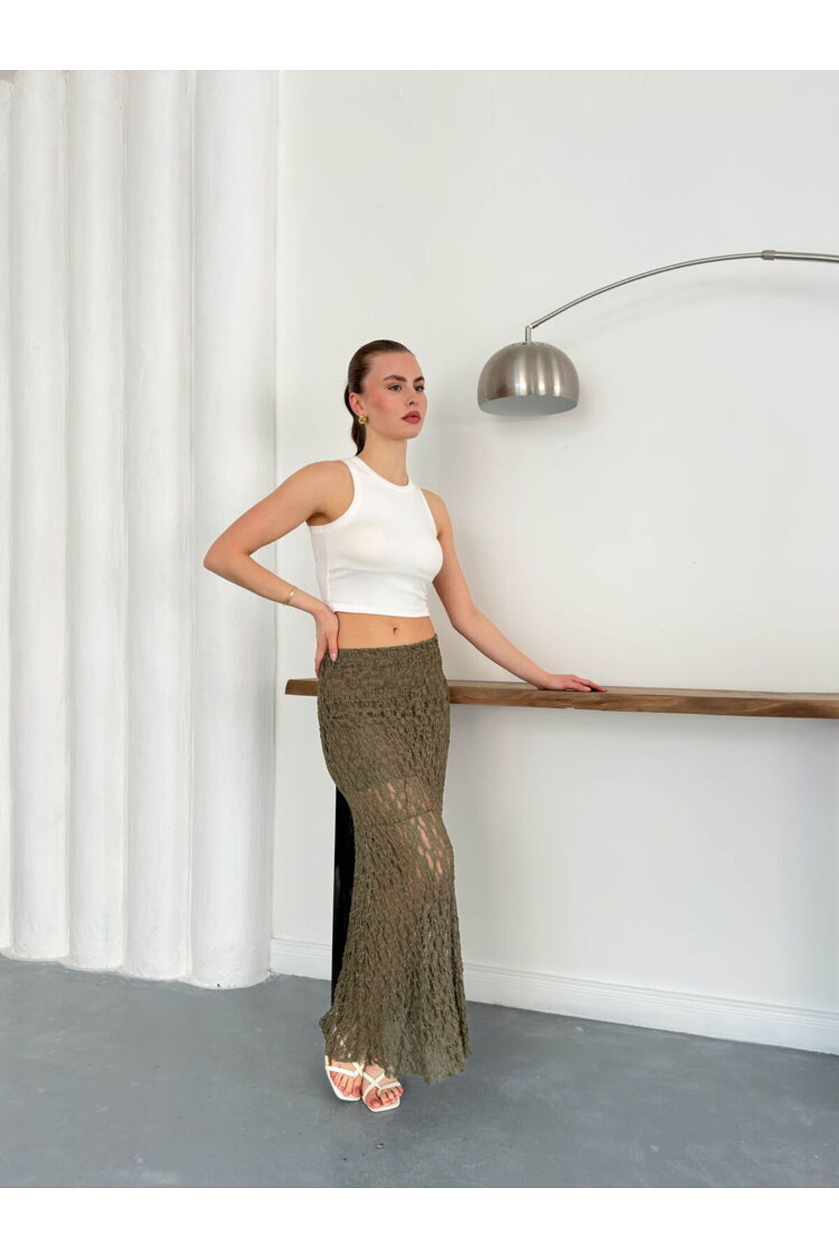 Haki Dantel Etek Modern Premium Luxury Trend Tasarım Etek
