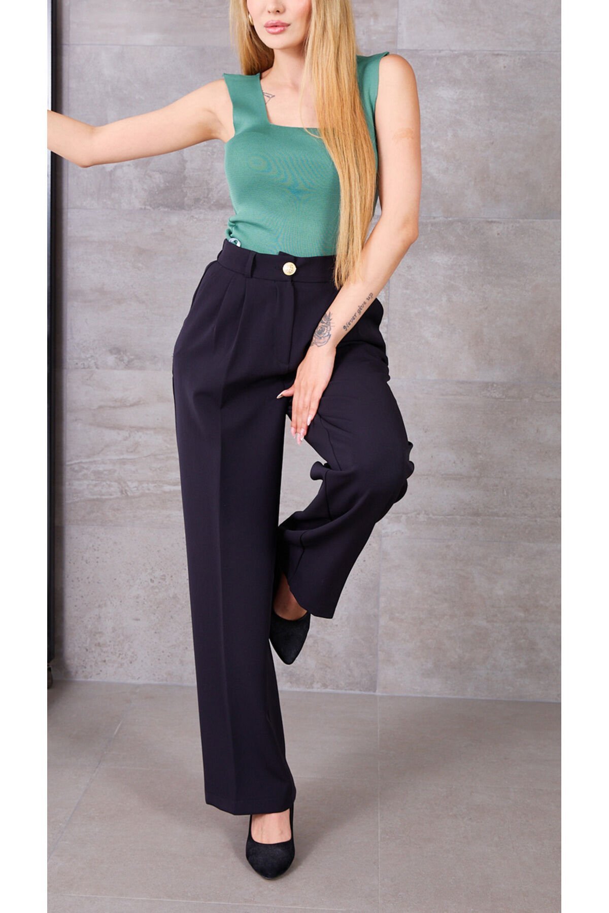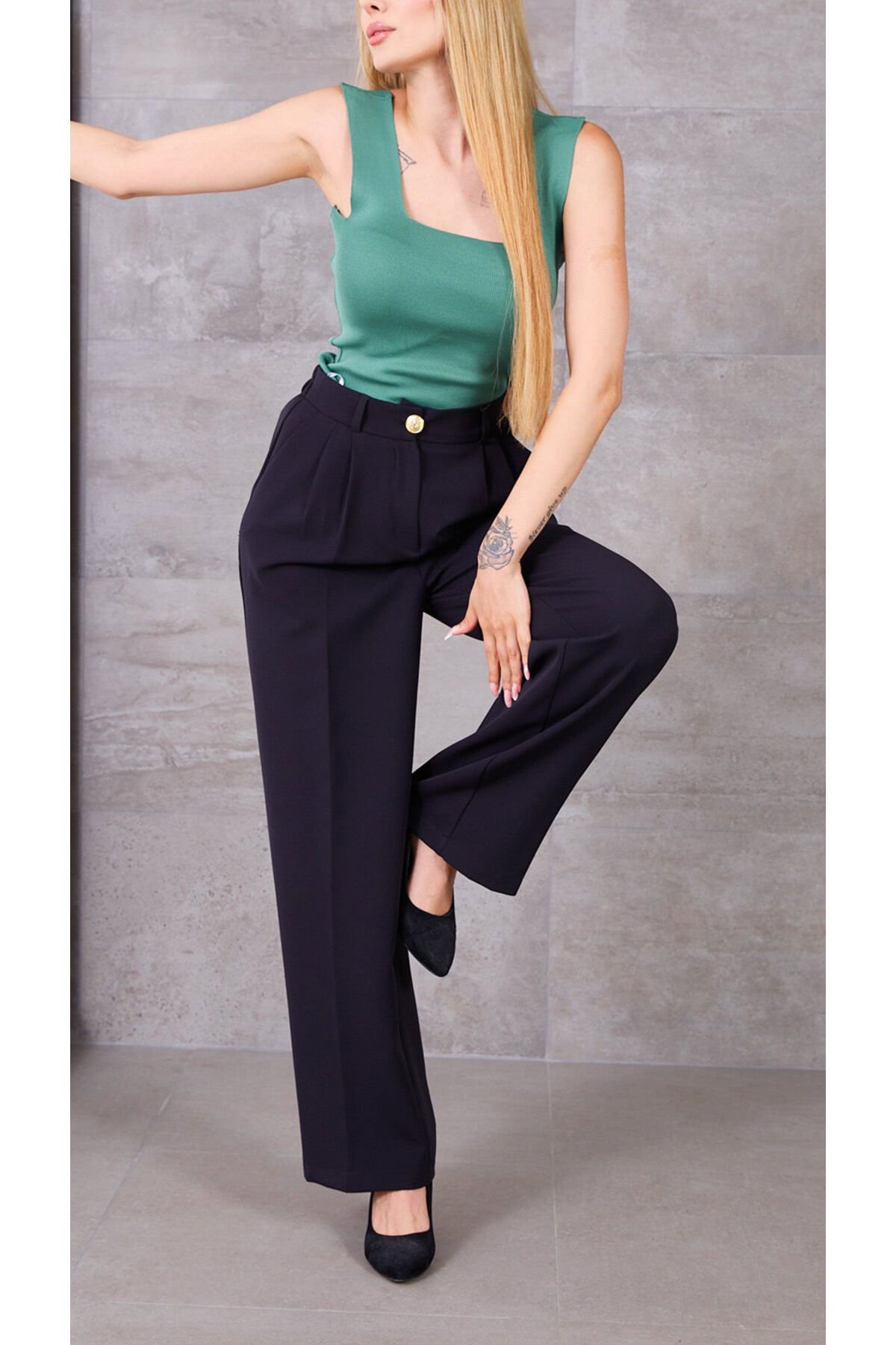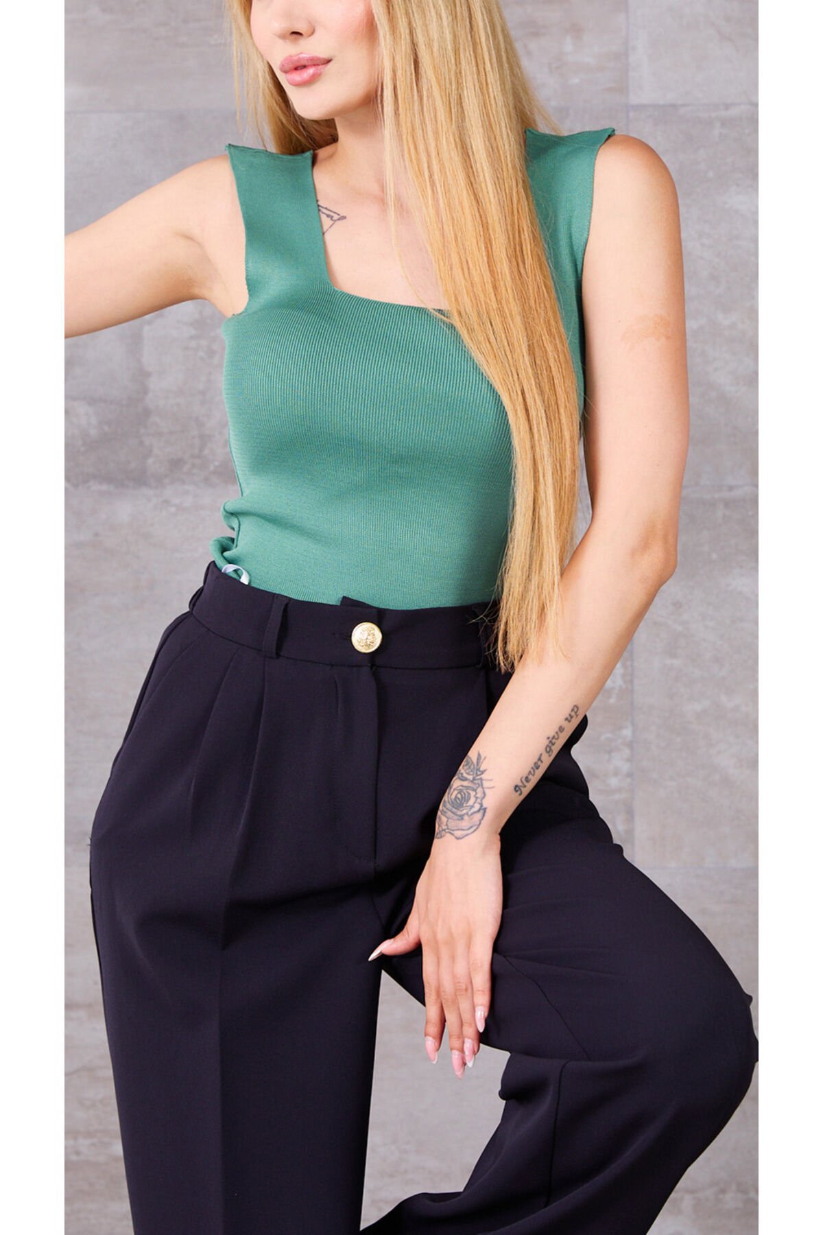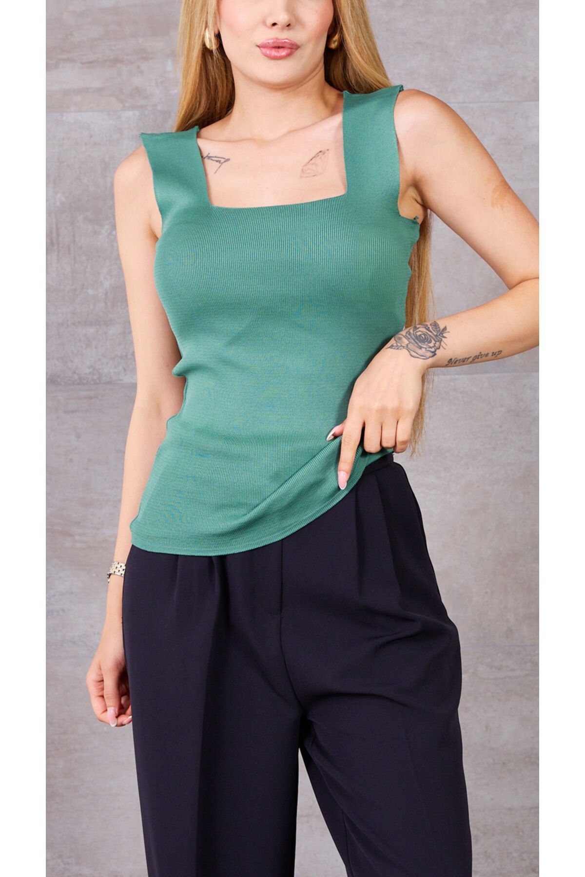 Kare Yaka Kalın Askılı Kolsuz Fitilli Triko Atlet