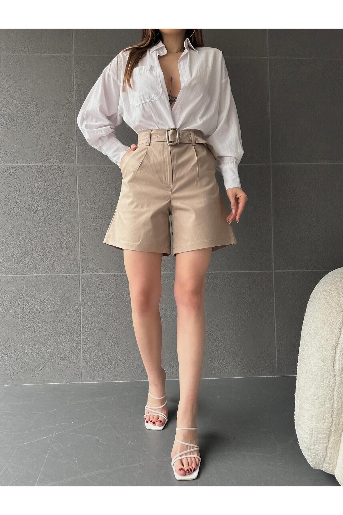 Kuş Gözü Kemerli Geniş Paçalı Kadın Mom Şort