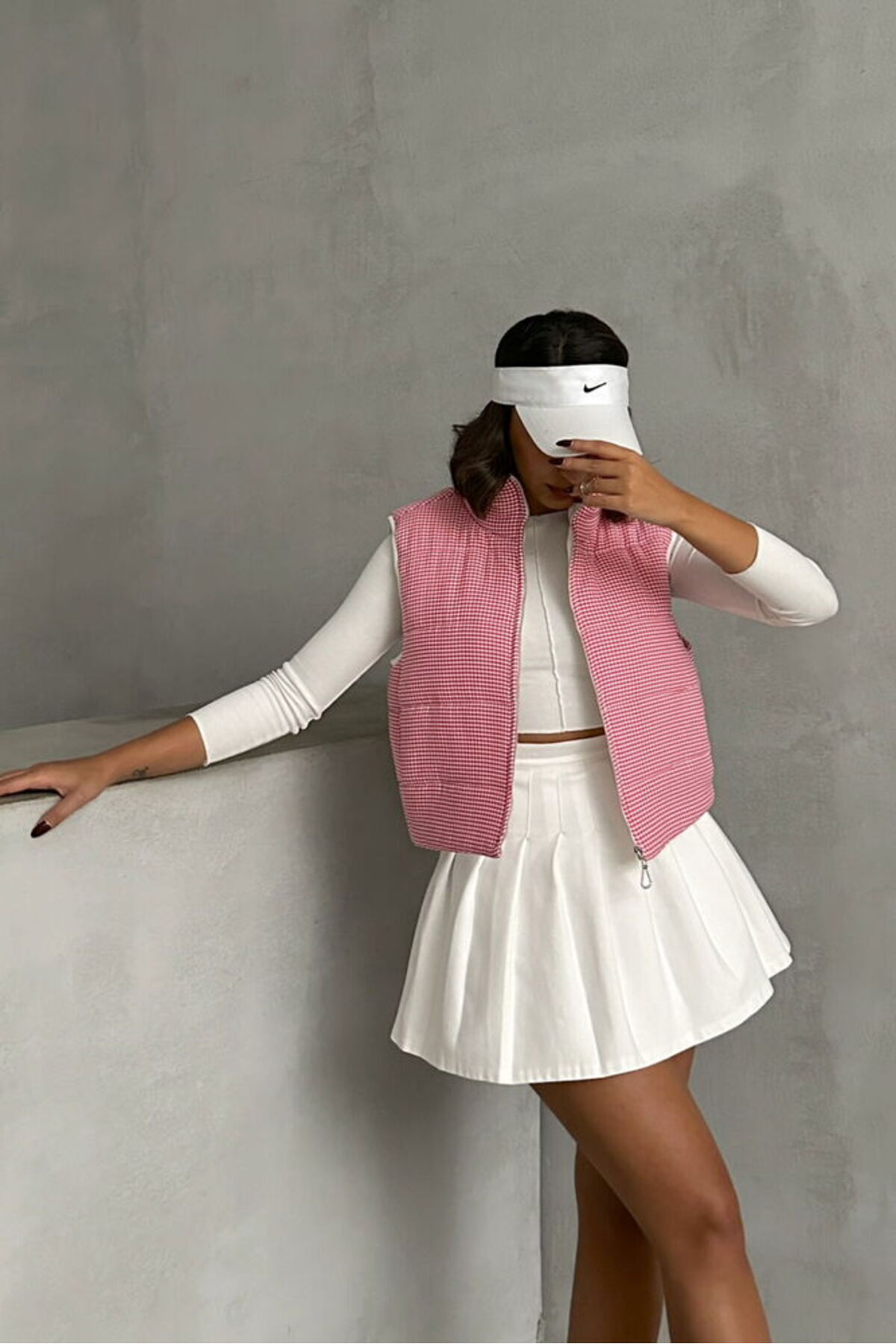 Fuşya (Pembe) Pitikare Desen Elyaflı Şişme Şık Premium Luxury Trend Özel Tasarım Kadın Yelek