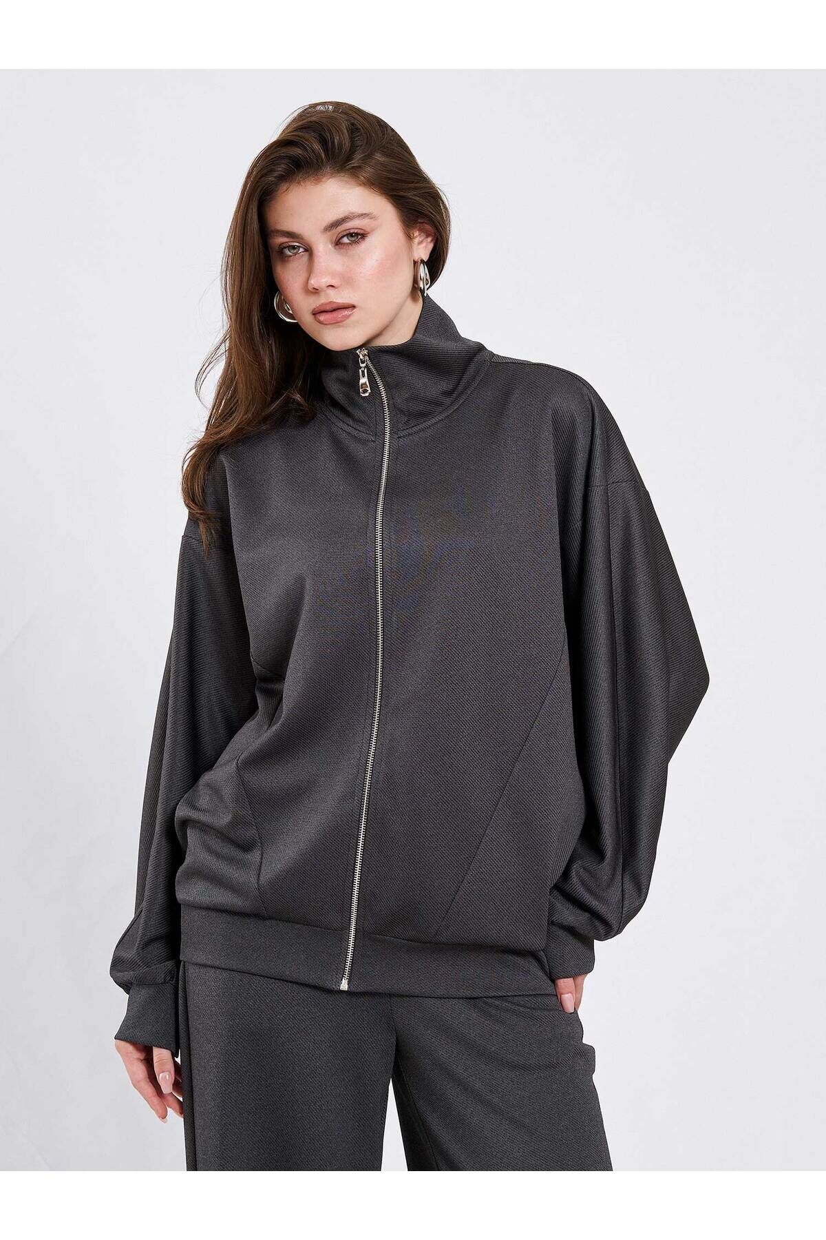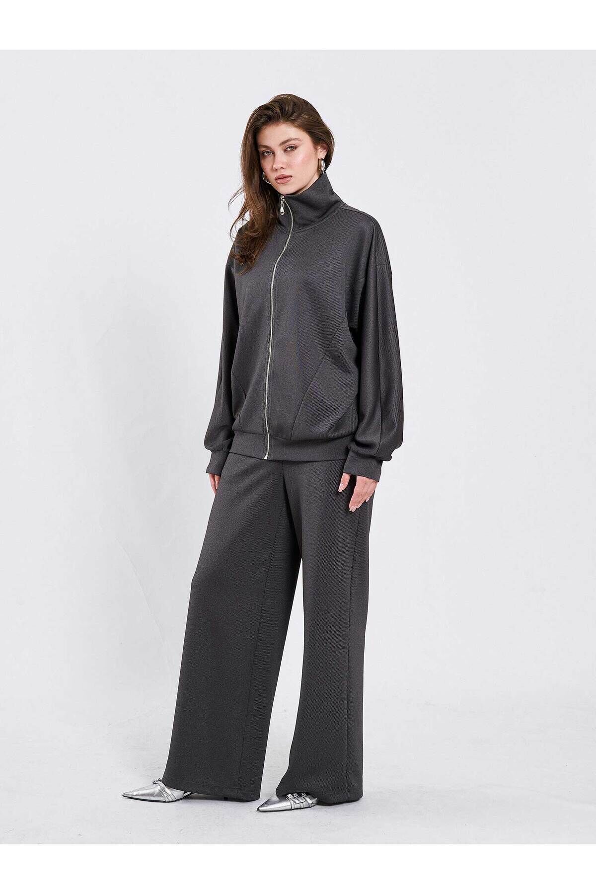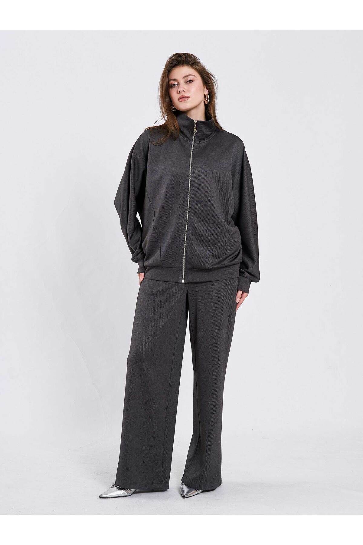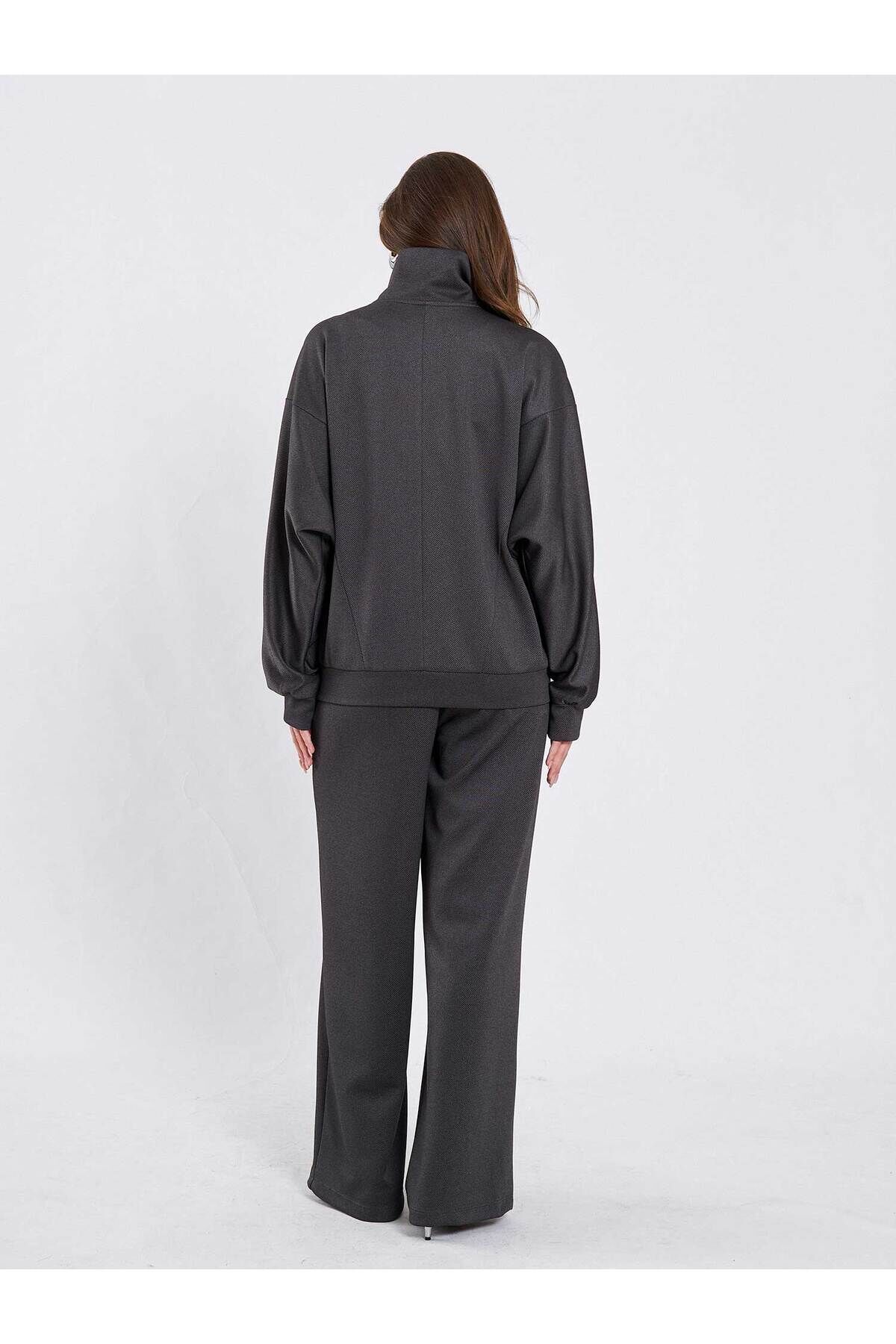 Antrasit Örme Eşofman Takımı Modern Premium Luxury Trend Tasarım Takım