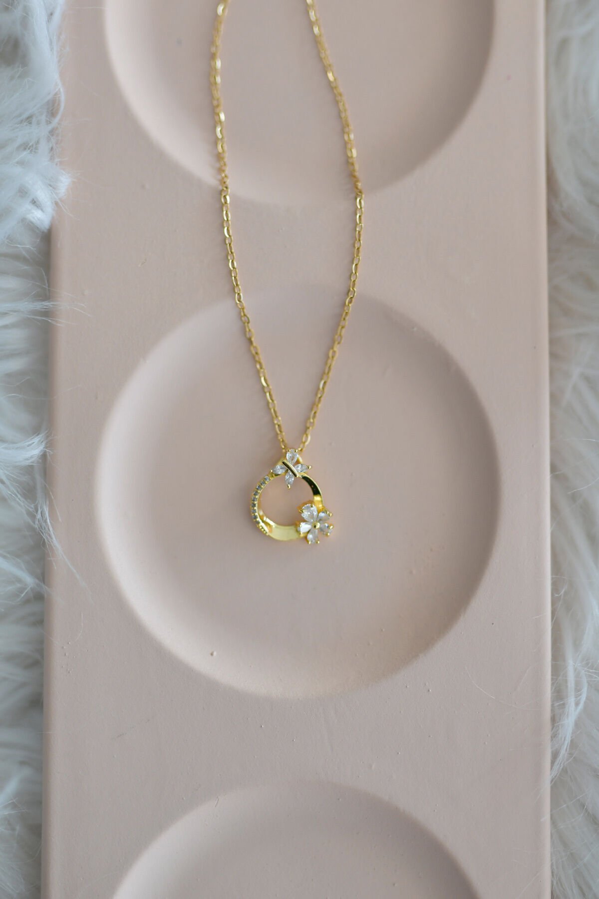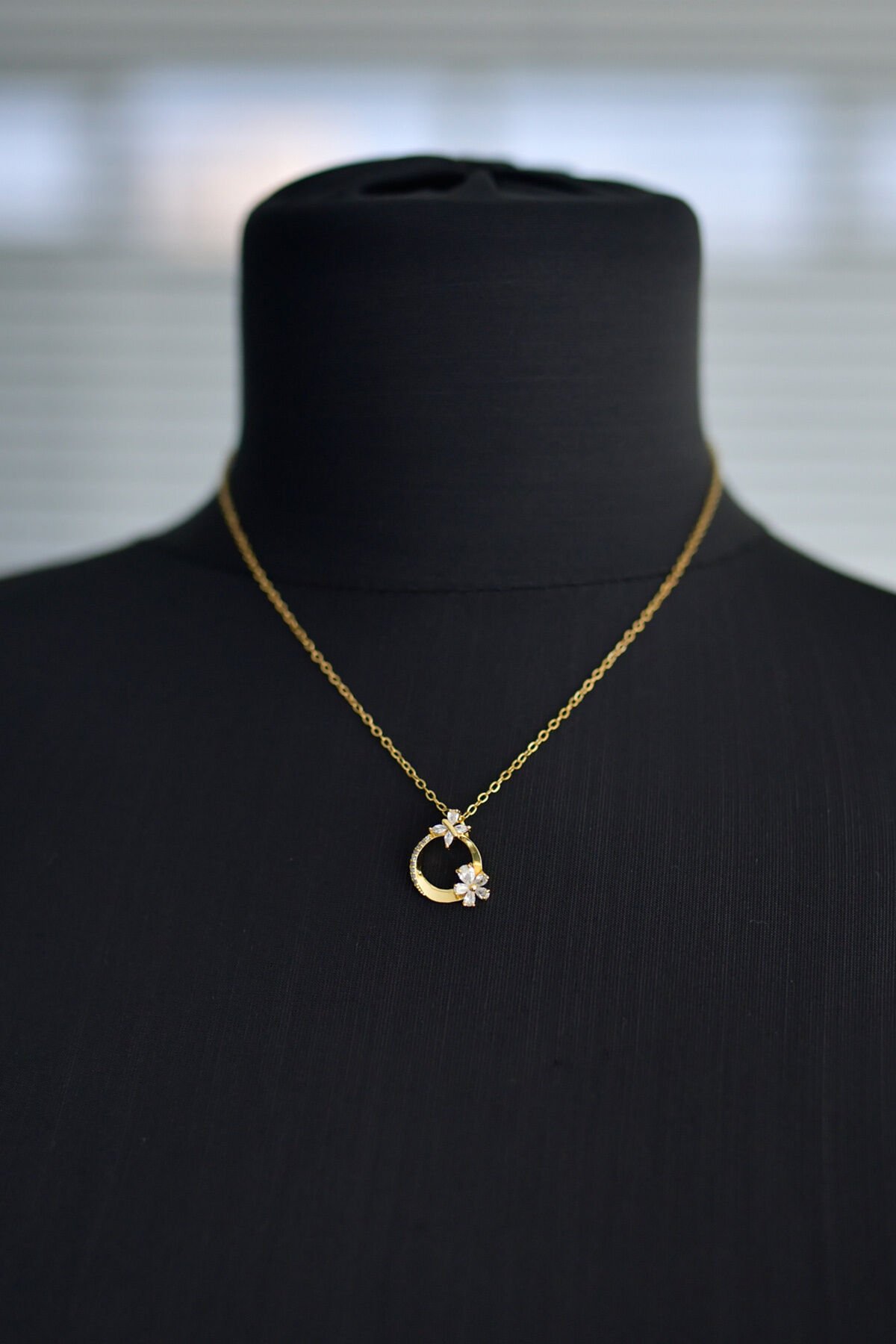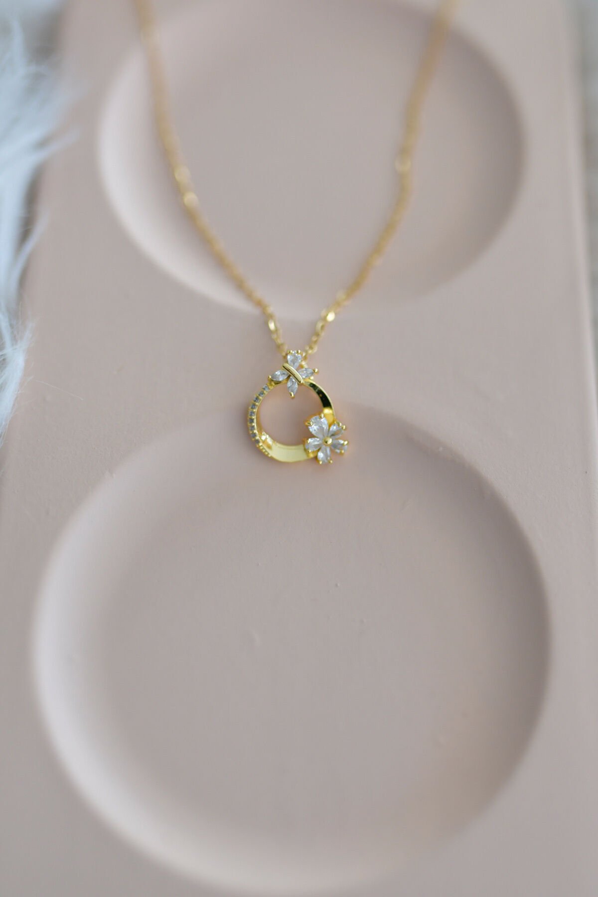 Çiçek Detaylı Çelik Kolye Gold Renk Paslanmaz Kararmaz
