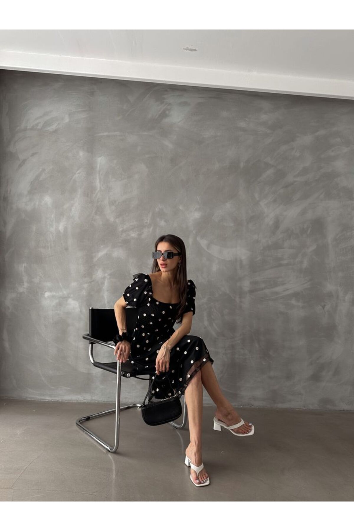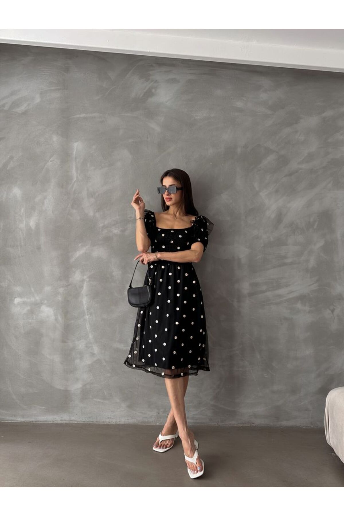Papatya Desenli Kayık Yaka Göğüs Gipeli Tül Detaylı Midi Elbise Zarafeti ve bahar enerjisini stilinize taşıyan bu özel tasarım elbise, gardırobunuzun en favori parçası olmaya aday.; Romantik papatya desenleri ve modern detaylarıyla hem günlük şıklığınızda hem de özel davetlerde göz kamaştırıcı bir görünüm sunar.; Ürün Özellikleri: Tasarım: Zarif kayık yaka kesimi ve omuzlardaki tül detayları ile feminen bir hava yaratır.; Gipe Detayı: Göğüs kısmındaki esnek gipe çalışması, vücut hatlarınıza mükemmel uyum sağlarken konforlu bir kullanım sunar.; Kumaş Yapısı: Hafif ve nefes alan yapısıyla gün boyu rahatlık sağlar.; Üzerindeki tül katmanı, elbiseye derinlik ve hareket kazandırır.; Boy: Midi boy kesimi sayesinde her türlü ayakkabı kombinine (topuklu, babet veya sneaker) uyum sağlar.; Kalıp: Standart kalıptır; esnek gipe yapısı sayesinde farklı vücut tiplerine kolayca adapte olur.; Kombin Önerisi: Gündüz sandaletler ve hasır bir çanta ile bohem bir tarz yakalayabilir, akşam ise ince bantlı topuklu ayakkabılar ve minimal takılarla şıklığınızı tamamlayabilirsiniz.; Yıkama ve Bakım: Ürünün formunu ve desen canlılığını koruması için düşük ısıda hassas yıkama yapılması veya elde yıkanması önerilir.; Farklı renk seçenekleriyle her tarza hitap eden bu papatya desenli midi elbise, zamansız tasarımıyla her sezonun vazgeçilmezi olacak.
