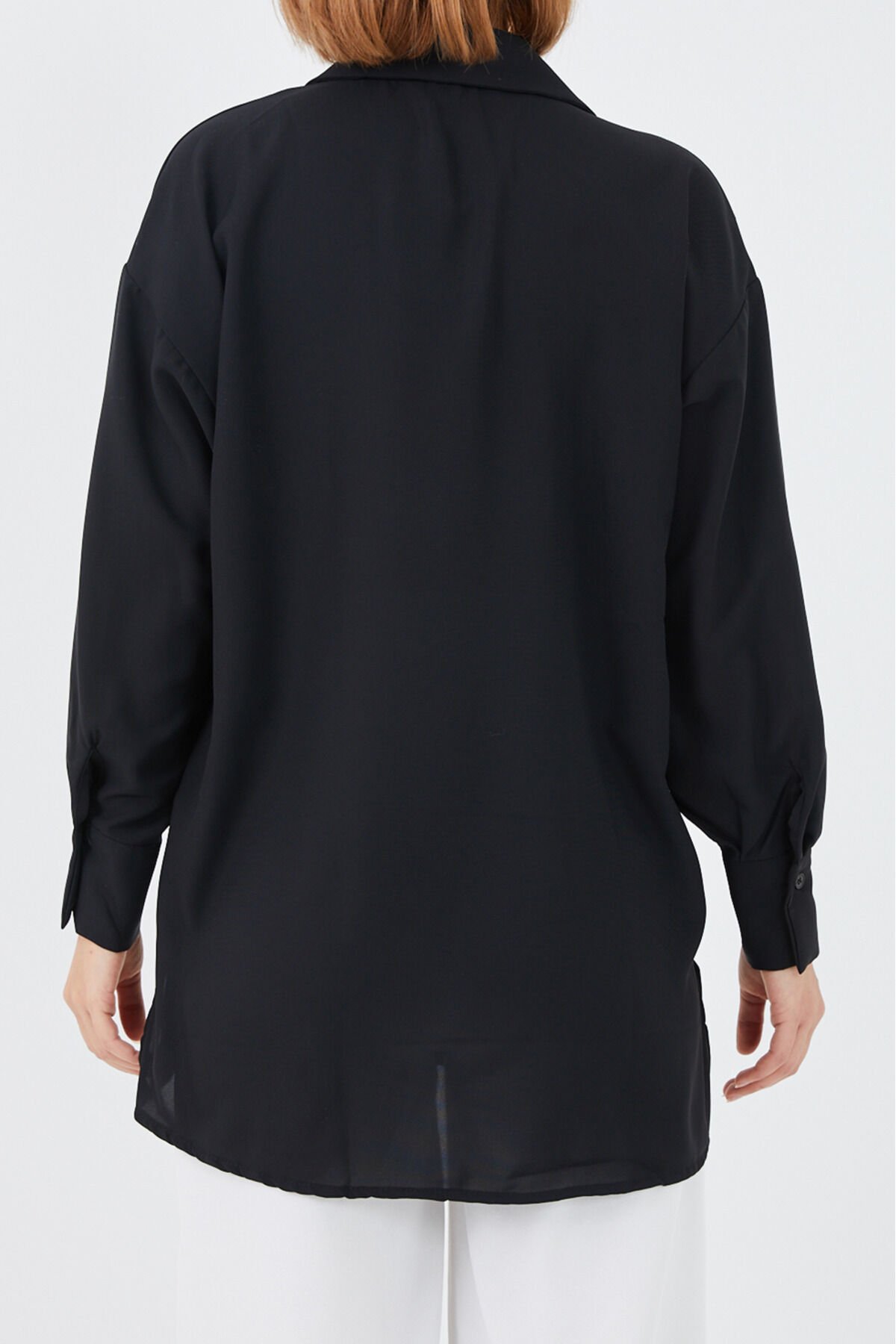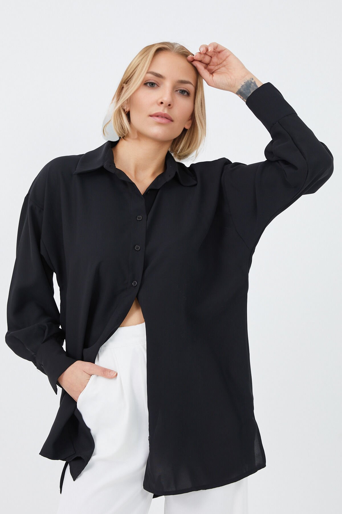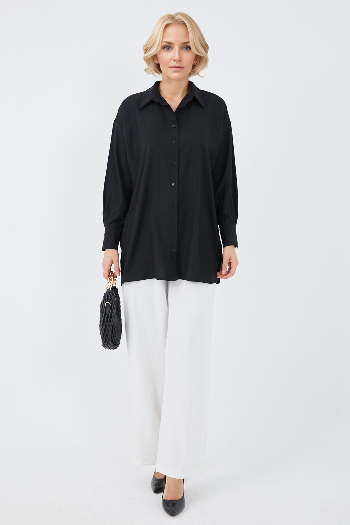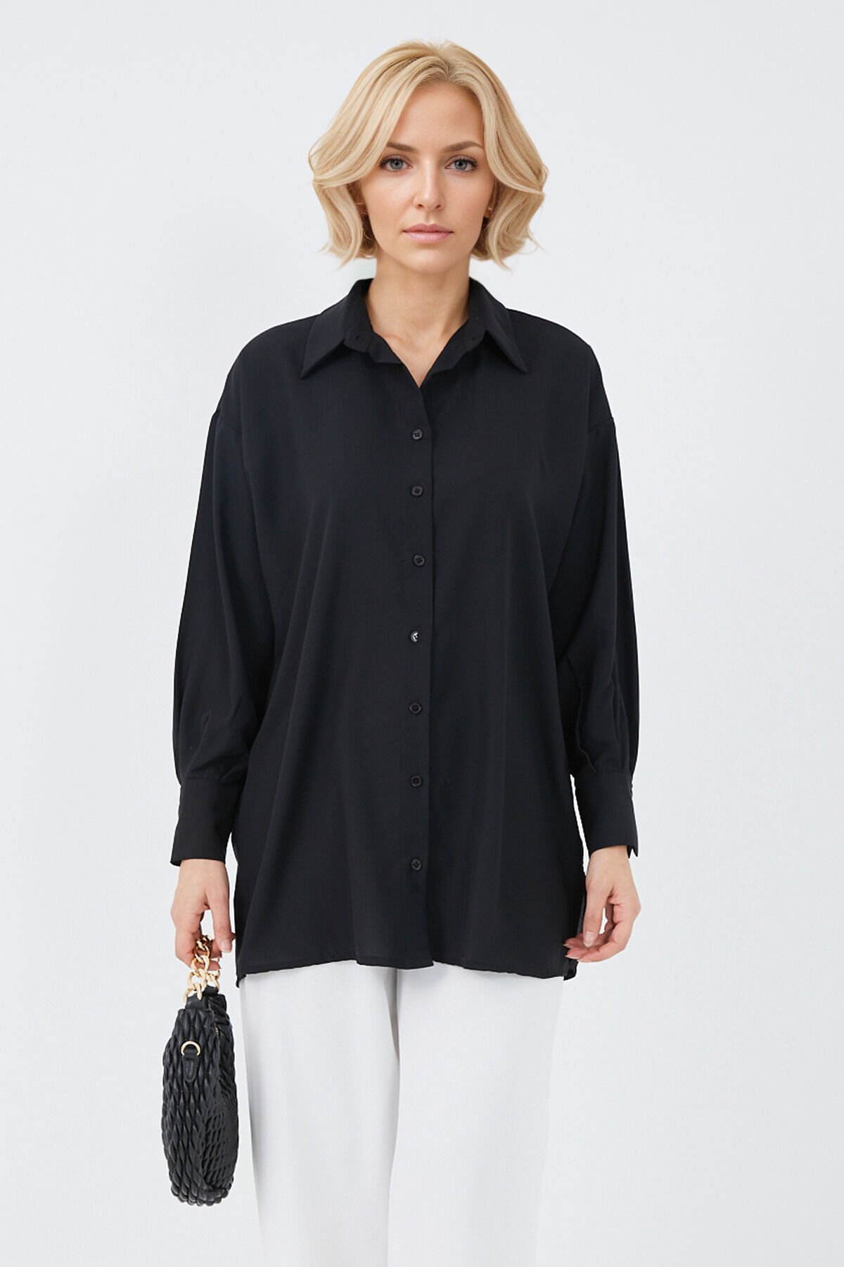 Salaş Rahat Gömlek Kadın Siyah %100 Pamuk Basic Oversize