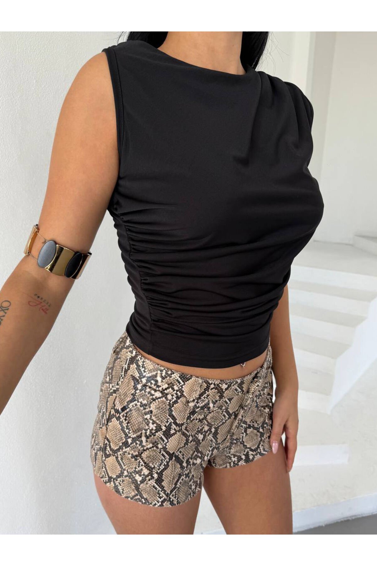 Sandy Kolsuz Drapeli Büzgülü Kadın Bluz