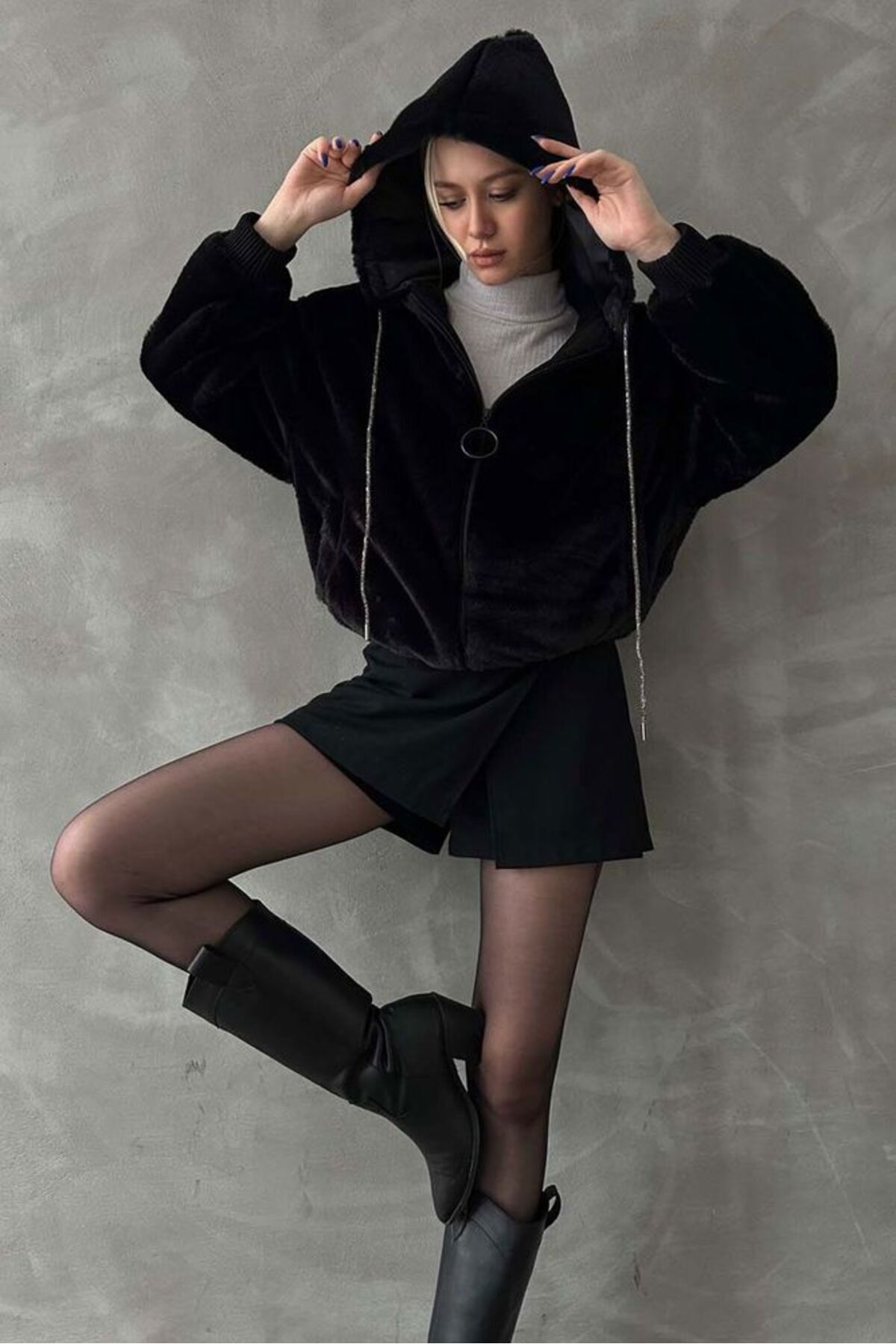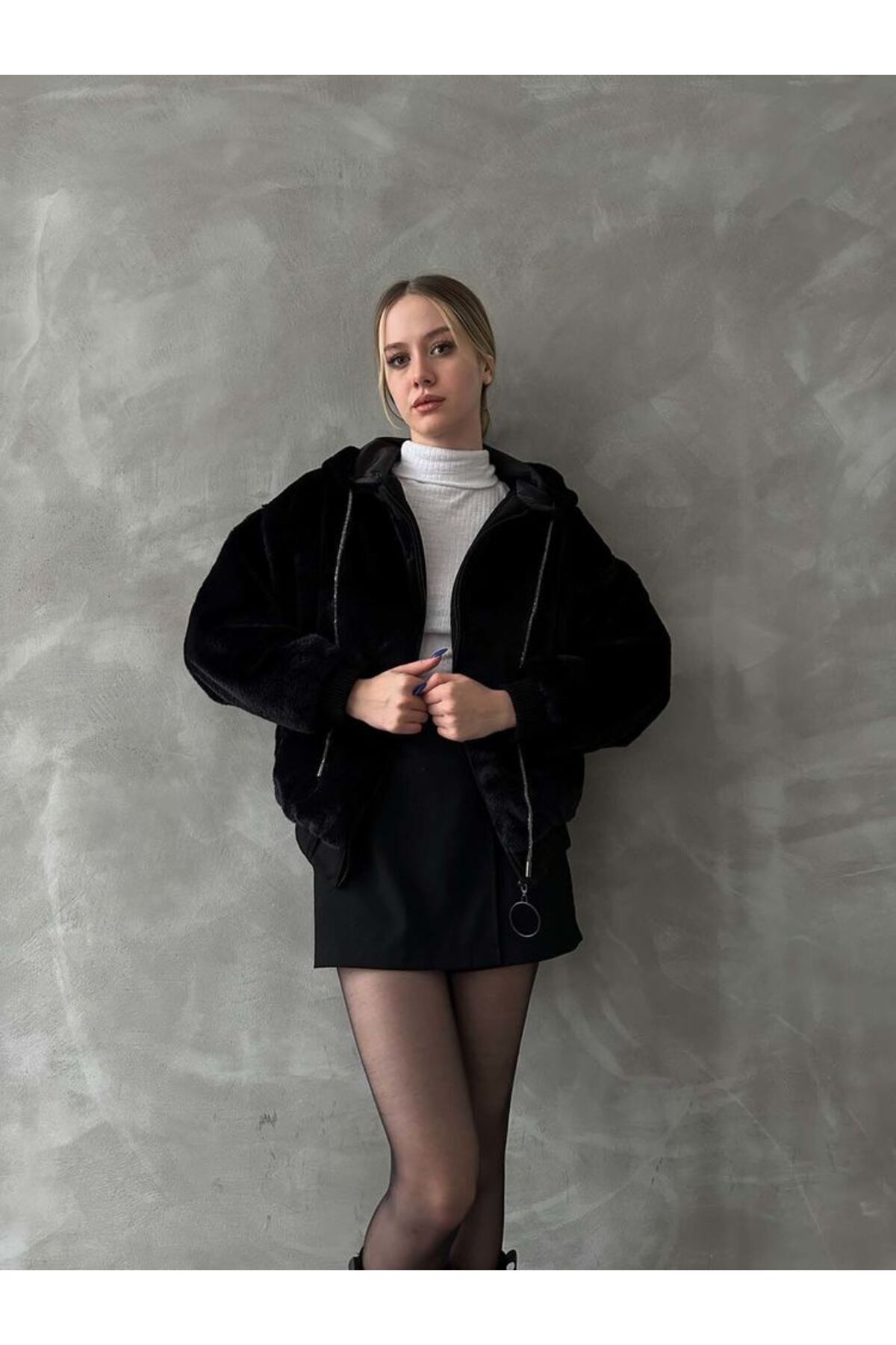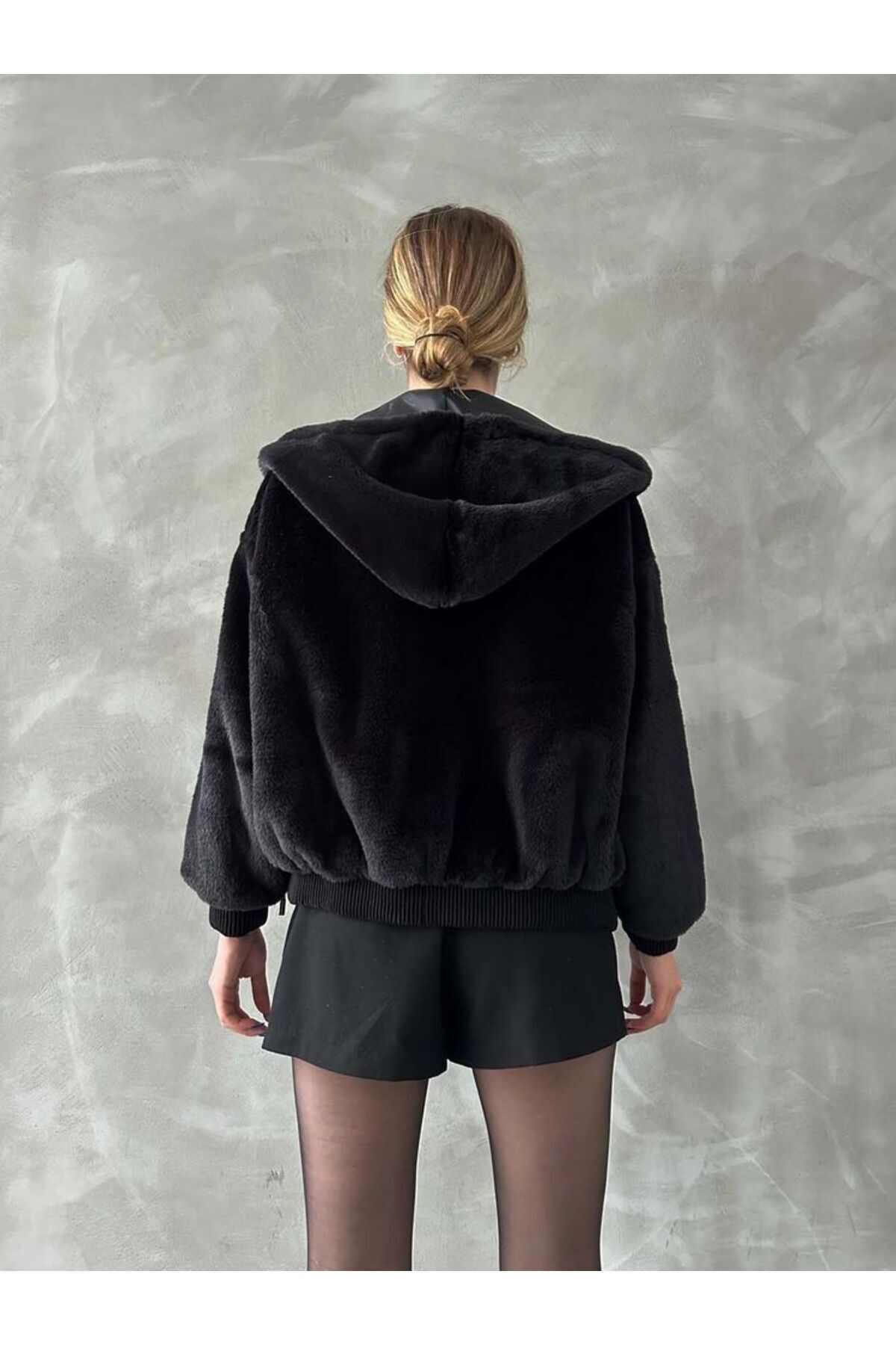 Siyah Peluş Mont Modern Premium Luxury Trend Tasarım Mont
