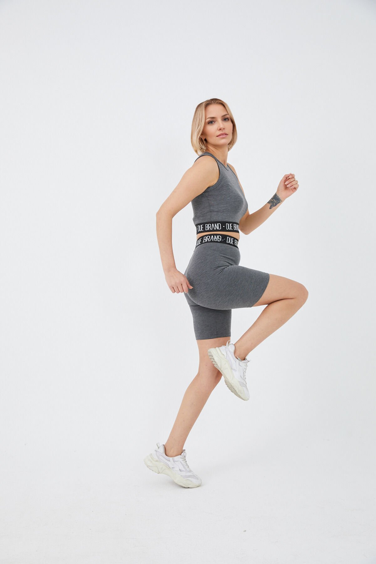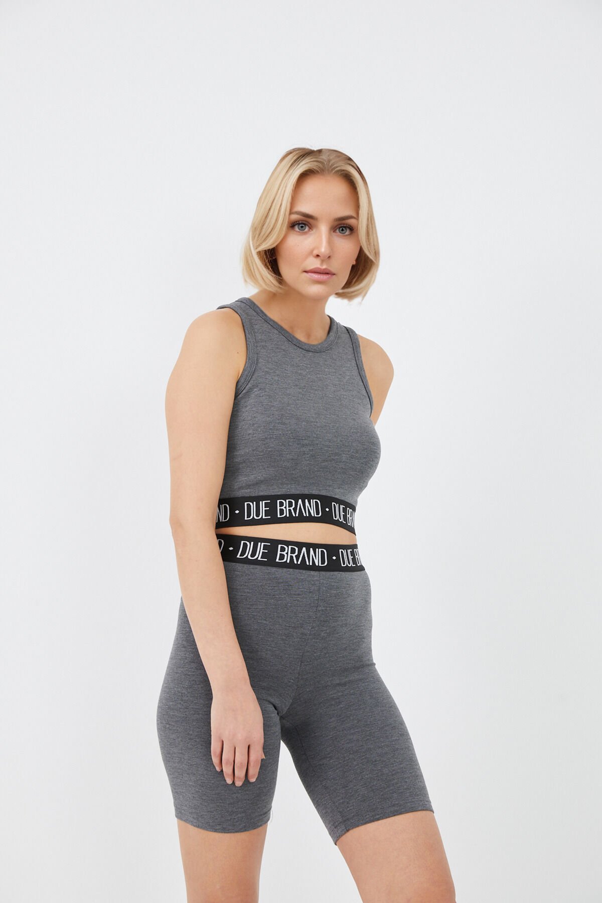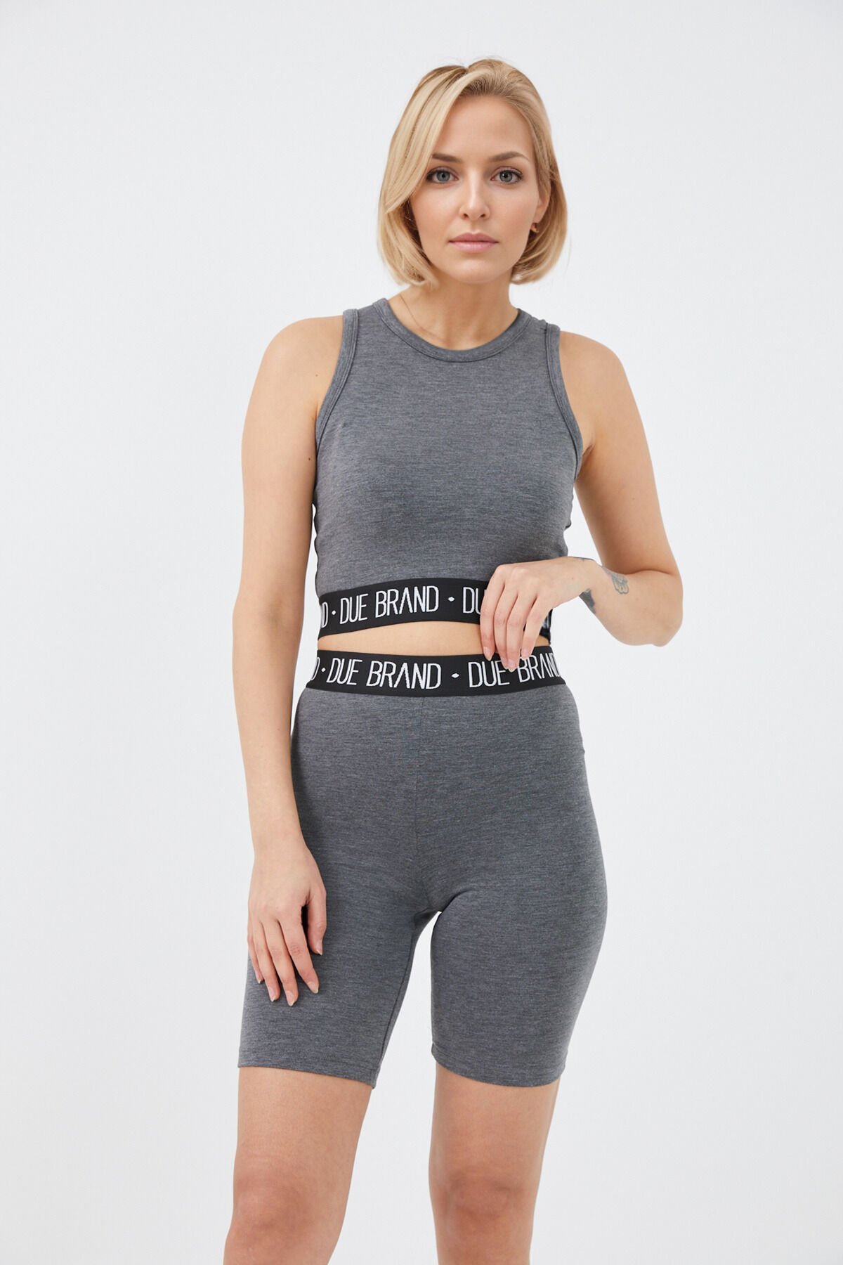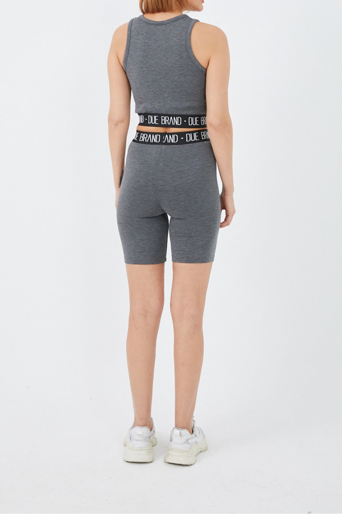 Yüksek Bel Tayt Crop Büstiyer Toparlayıcı Kadın Alt Üst Takım Antrasit
